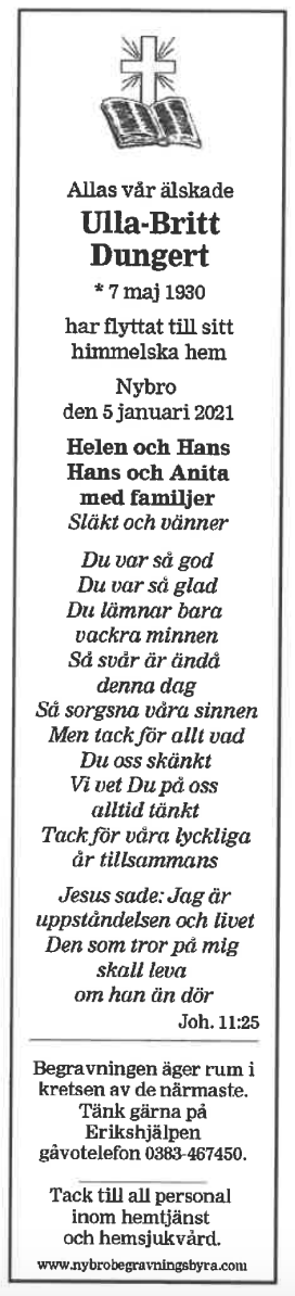 När vi skulle välja vers till dödsannonsen blev det sorgligt. Jag läste och grät, läste och grät. Till slut bestämde vi oss för en vacker vers och ett bibelord. Vi blev riktigt nöjda med hela annonsen. Jag lägger in versen och bibelordet här: