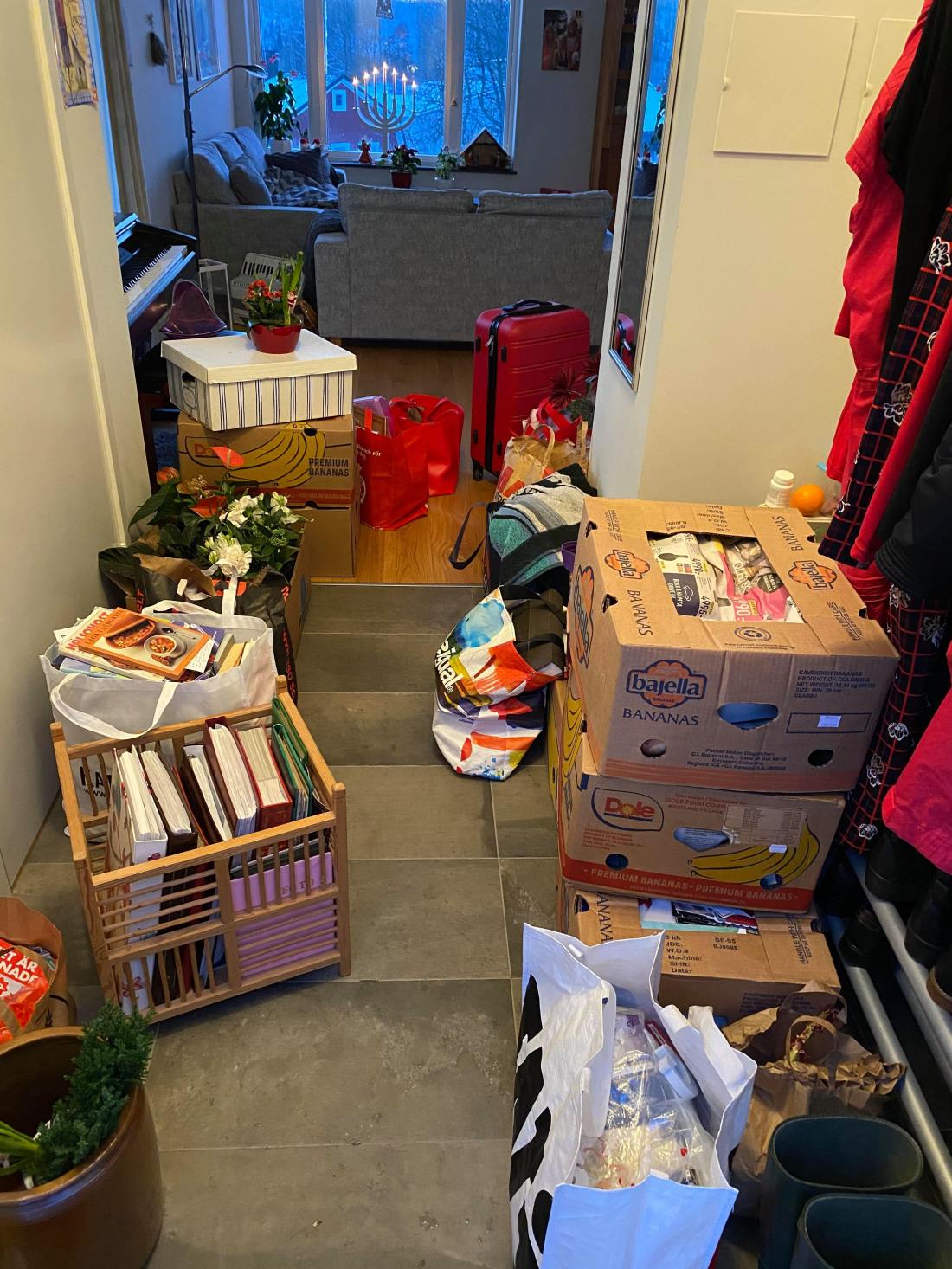 Mamma har många grejer och vi tar kort för att kunna visa alla vad som finns och fråga vem som vill ha vad. Vissa saker som vi inte trodde att någon ville ha paxades direkt. Härligt!