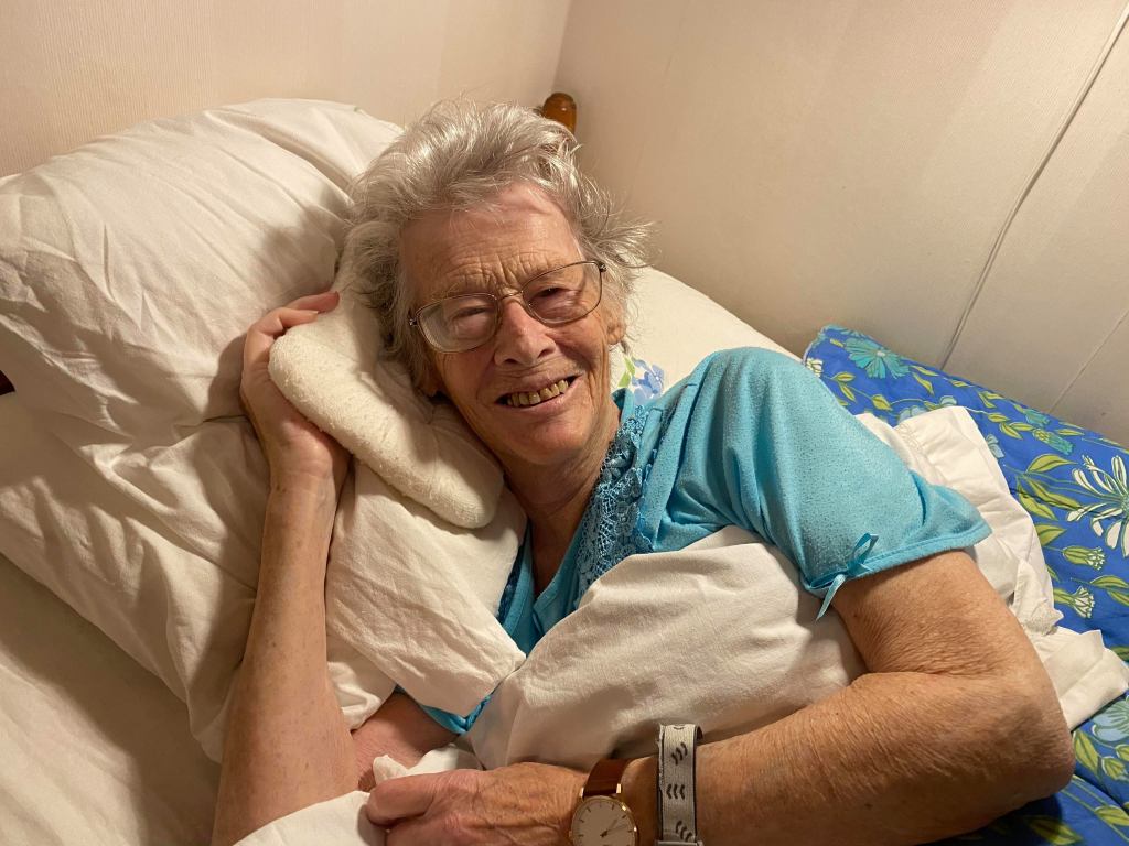Den 7 maj firade vi vår goda fina mammas 90-årsdag i fest och glädje. Ikväll kl. 23.35 fick hon flytta hem till sitt härliga himmelska hem som hon pratat så mycket om. Allt var lugnt och vackert när hon drog sitt sista andetag och jag fick vara nära och hålla henne i handen som jag önskat. Hon hade helst velat att ”Jesus hämtat oss alla på skyn” samtidigt men nu har hon fått gå före.