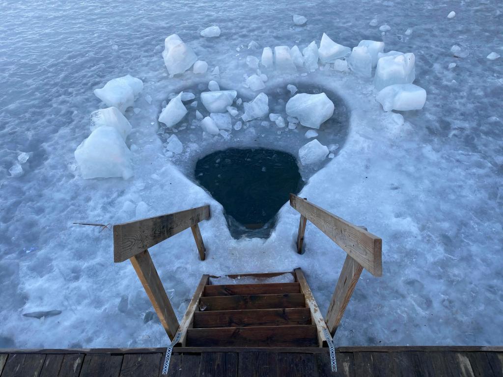 Så kom vi fram till badet och vill kolla på hjärt-isvaken som en kille hade fixat så fint inför Alla hjärtans dag. Hjärtat fanns kvar om än något igenfruset. Vilket jättefint initiativ att göra denna isvak.