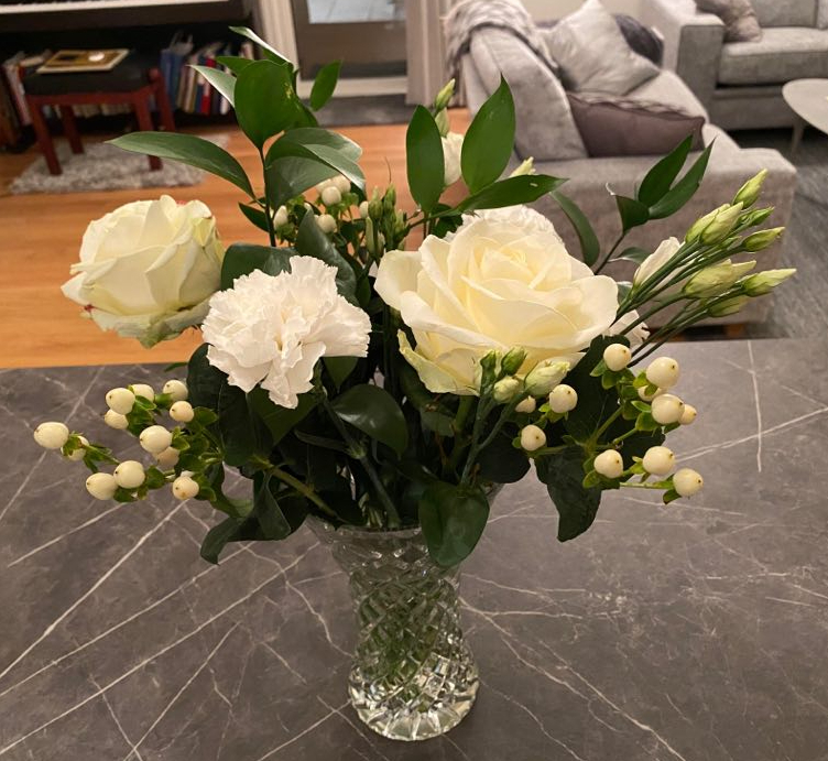 Hon hade också med sig en jättefin bukett blommor från mina vänner Mia och Bengt i Göteborg. De hade bett Yvonne att köpa en bukett som ett deltagande i sorgen efter mamma. Så gulligt! Dessa blommor ska jag njuta av länge nu.