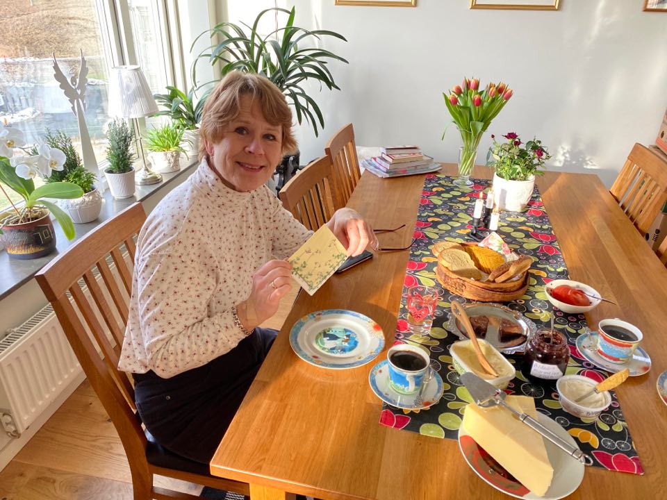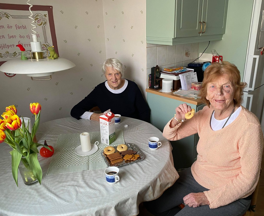 Så knackade det återigen på dörren och glada Inga undrade om hon fick bjuda på förmiddagskaffe. Såklart hon fick! En kaffepaus måste man ha. Sigbritt hade bakat kringlor och allt smakade mycket bra. Dessa härliga stunder med goda grannar är guld värda.