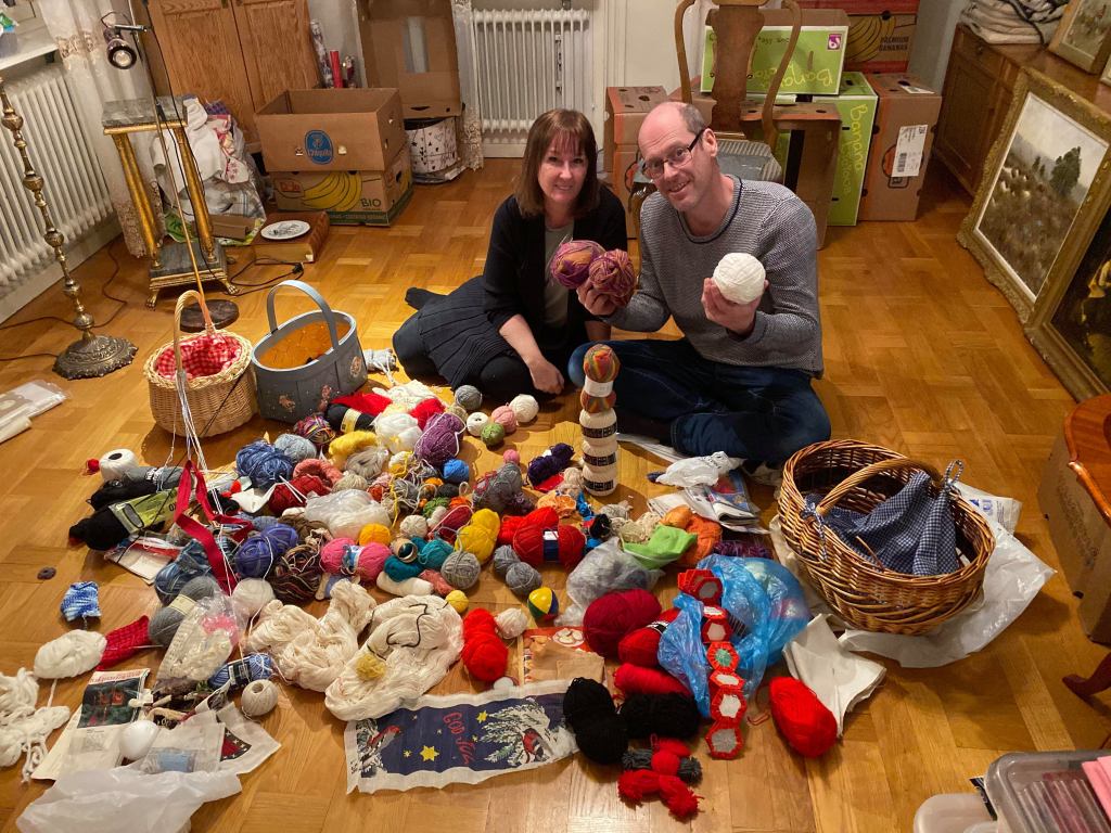 Mamma hade mycket garn. Här delar vi upp vad vi vill ha och resten ger vi bort.