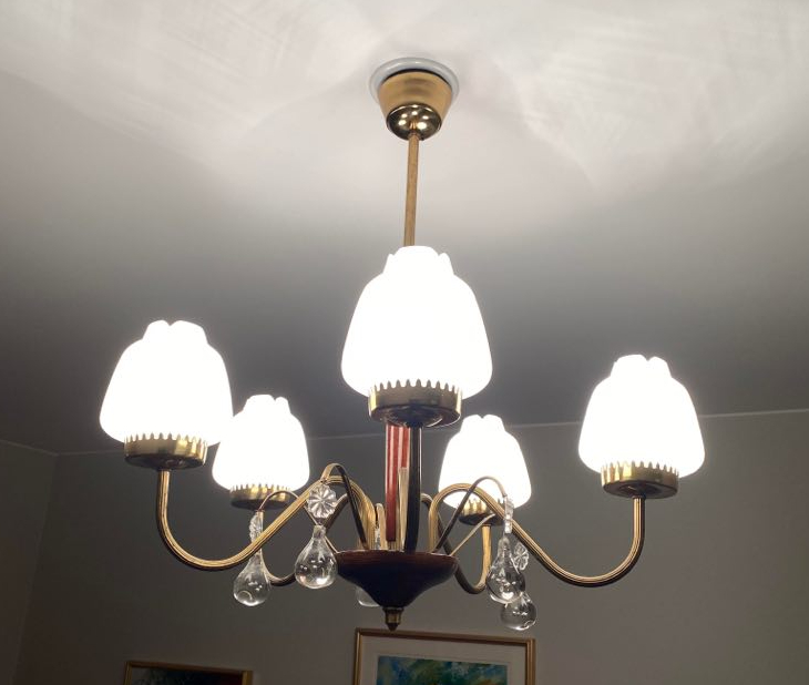 Ikväll har maken och jag satt upp denna gamla lampa som kommer från mitt barndomshem. Maken tyckte att kuporna såg nya ut men såvitt jag vet har de suttit där hela tiden. Jag kollade i ett album från 1976 och där satt dessa kupor på. Harmoni, glädje och tacksamhet är vad jag känner. Det är så härligt att få blanda nytt och gammalt.