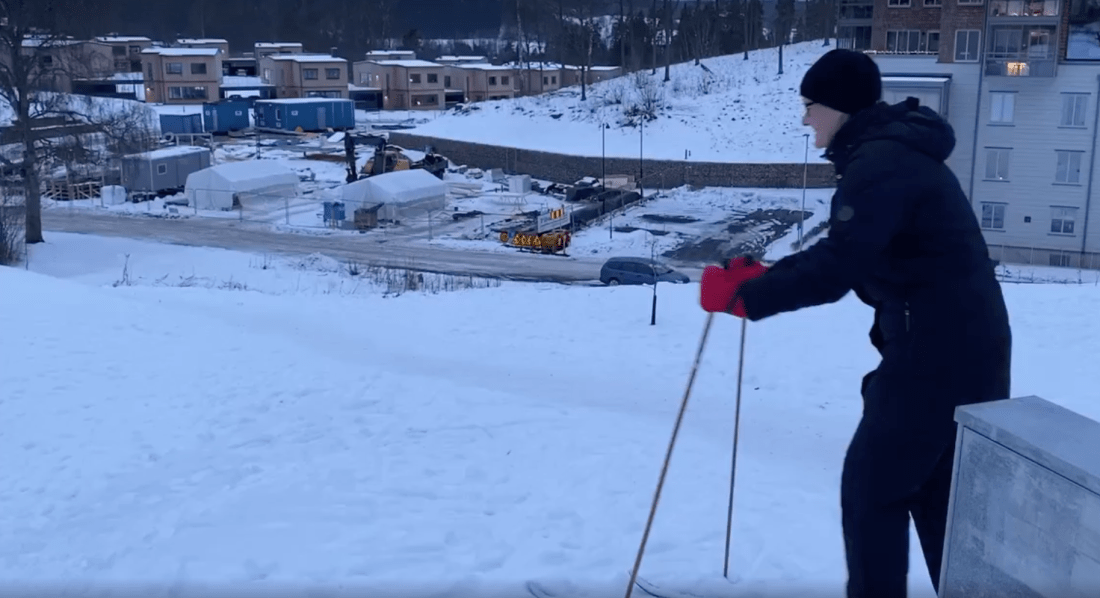 Efter jobbet tog jag på mig pjäxorna för att åka skidor i trädgården. Jag kände mig så feg och hade dålig balans när Monica och jag var vid Hallbystugan så nu ville jag träna balansen. Jag åkte helt enkelt nedför slänten i trädgården. Det gick jättebra och var en lagom träning till att börja med. Jag trillade inte en enda gång idag. Jag kom riktigt långt. Tur att det är avstånd till nästa hus! En granne gick förbi så jag bad henne filma. Det är ett kul minne.