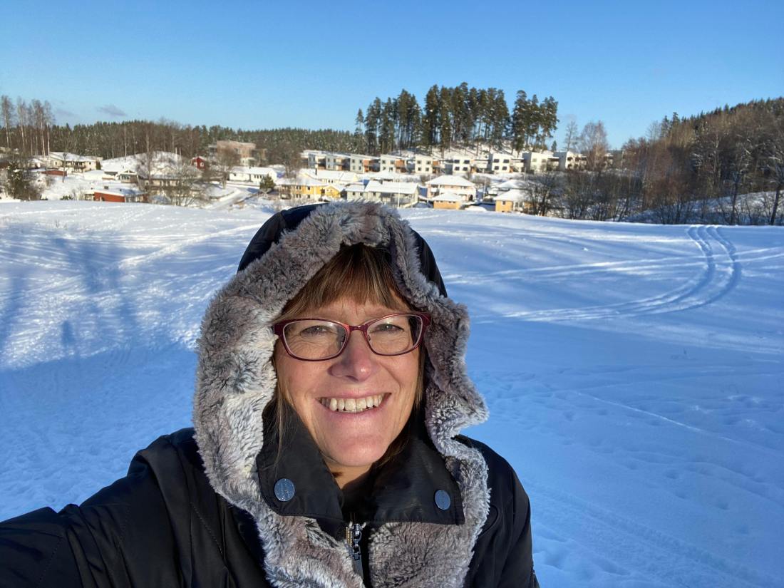 Det är ett vackert snölandskap, solen skiner och det är kallt. Jag tog en lunchpromenad här hemma i Hovslätt. Det gäller att vara väl påklädd. Att frysa är inte roligt. Är man bara väl rustad så är det helt underbart att vara ute i vårt vackra vinterlandskap.