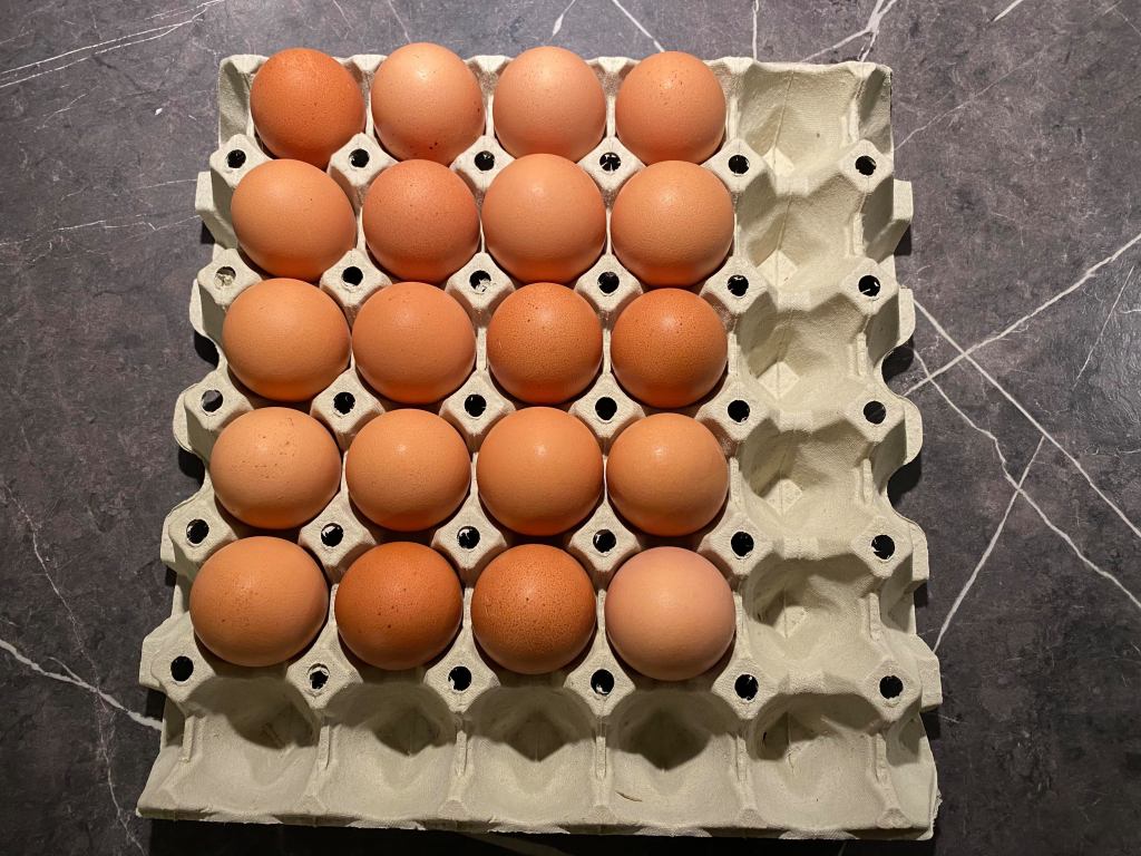 Emilia bor på en gård där det bl a finns hönor så hon gav oss varsitt fack med 20 ägg. Vilken härlig påskpresent! Jag blev jätteglad.
