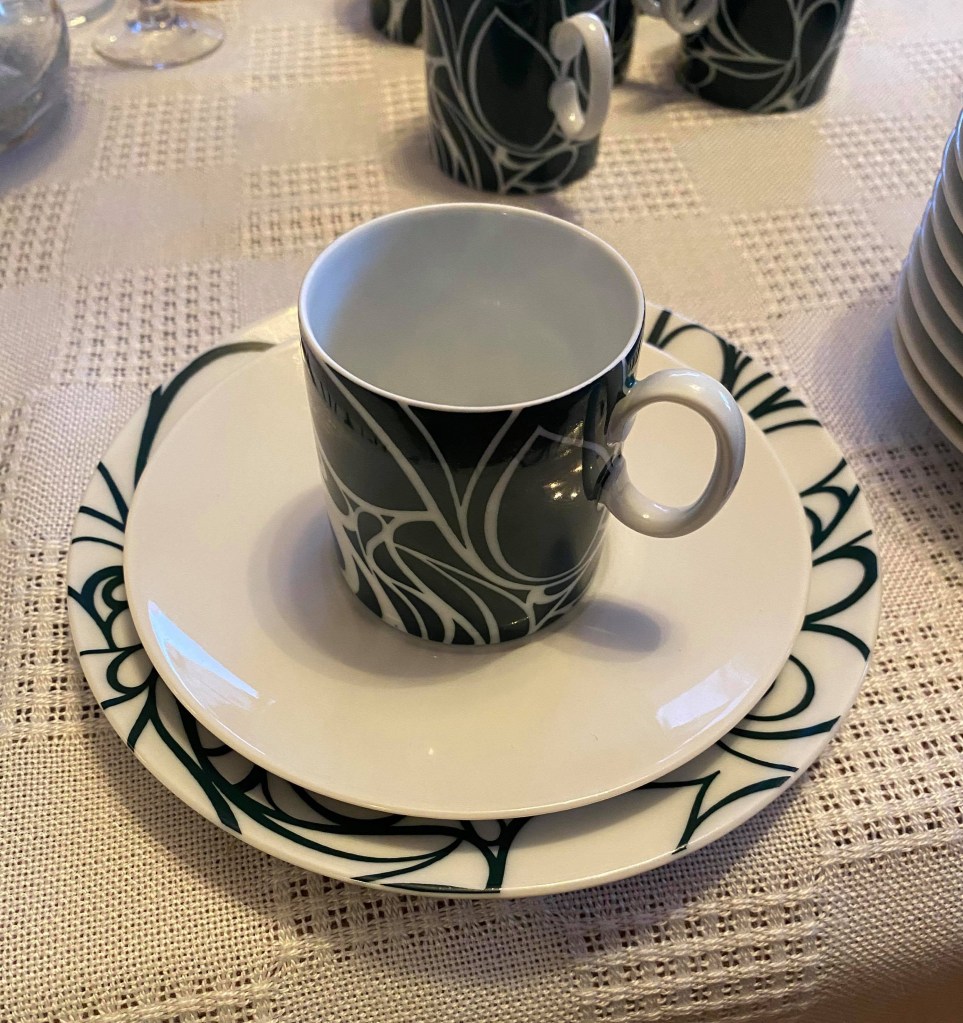 Idag, på självaste långfredagen, är jag glad att kunna inviga Thomas-koppen här hemma då vännen Bodil är på besök. Hon tycker också att den är snygg. Så glad jag är att jag har den kvar!
