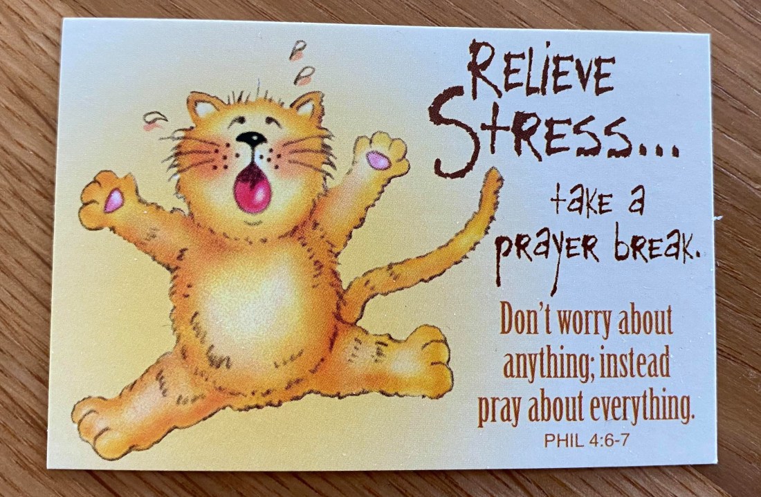 Relieve stress…take a prayer break. Gör dig av med stressen – ta en bönepaus.