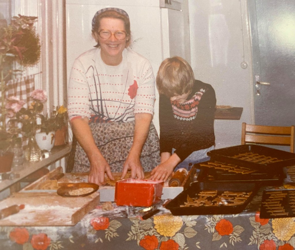 På bilden nedan bakar mamma pepparkakor med min lillebror Hans.