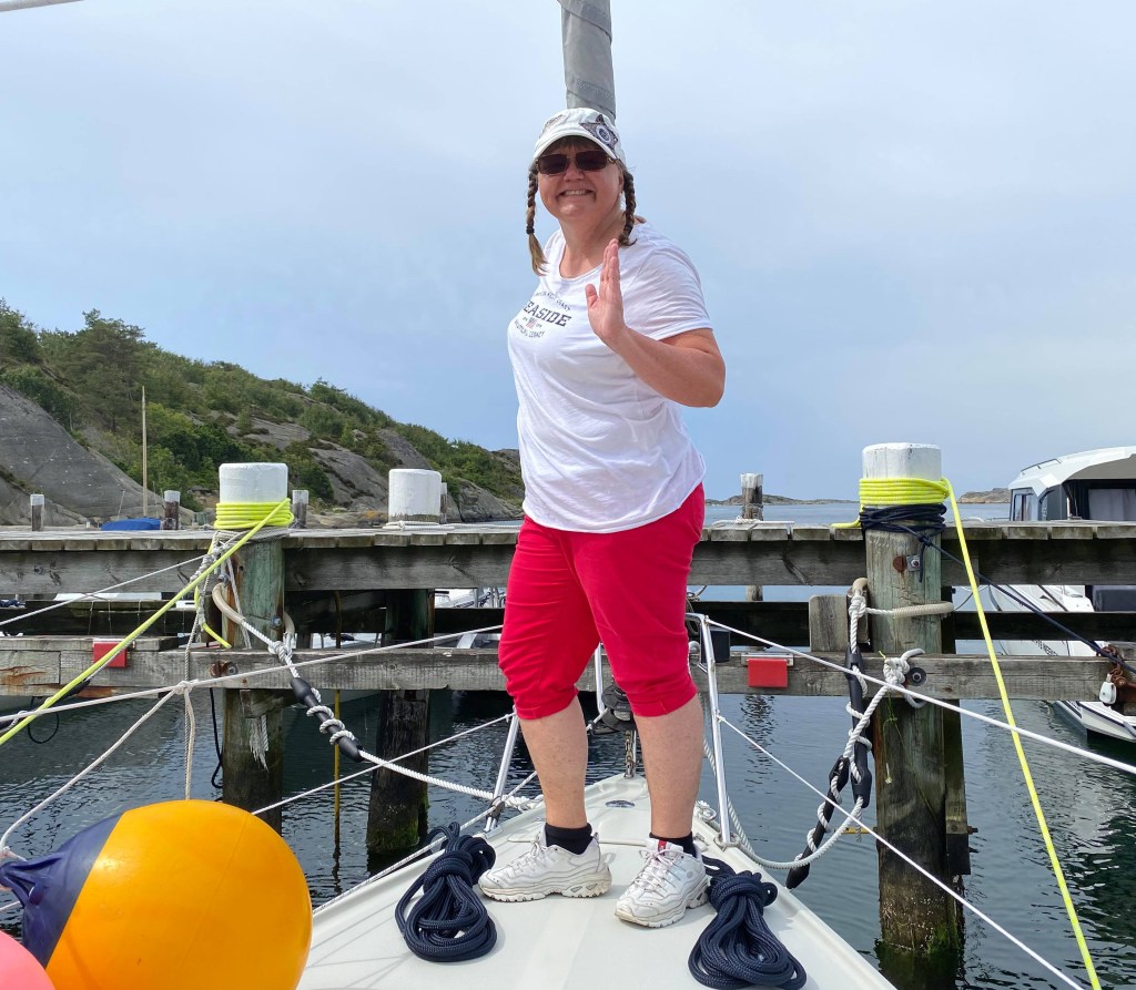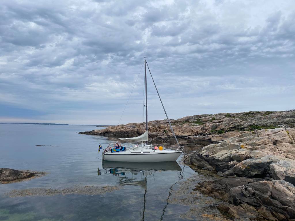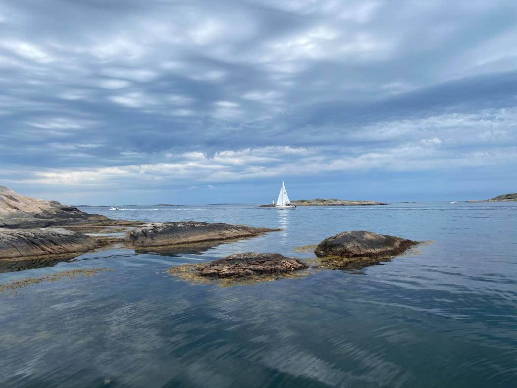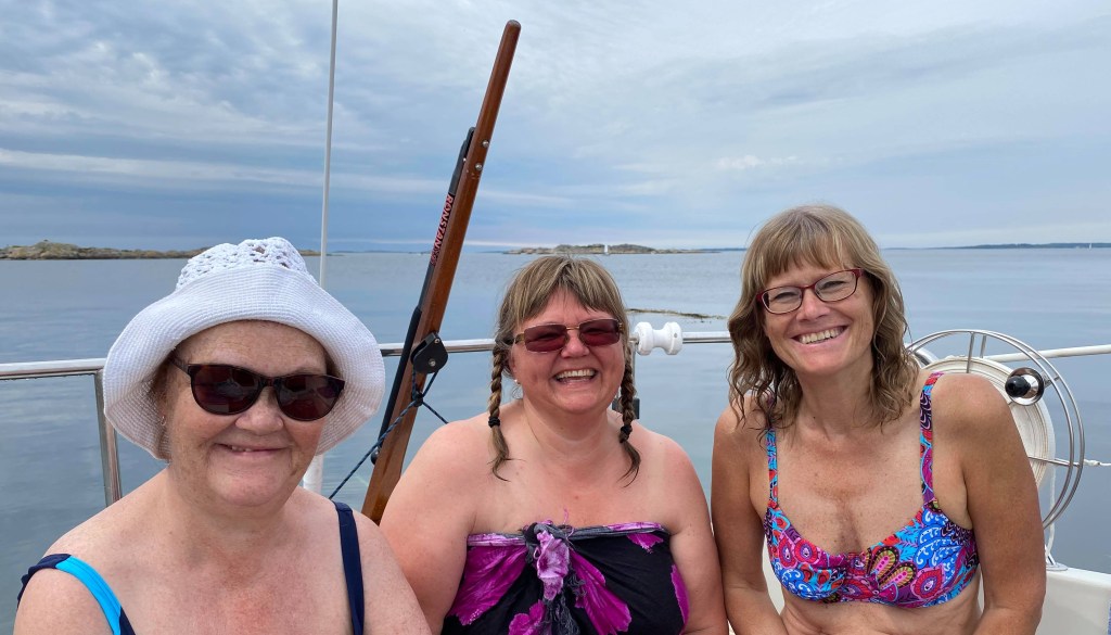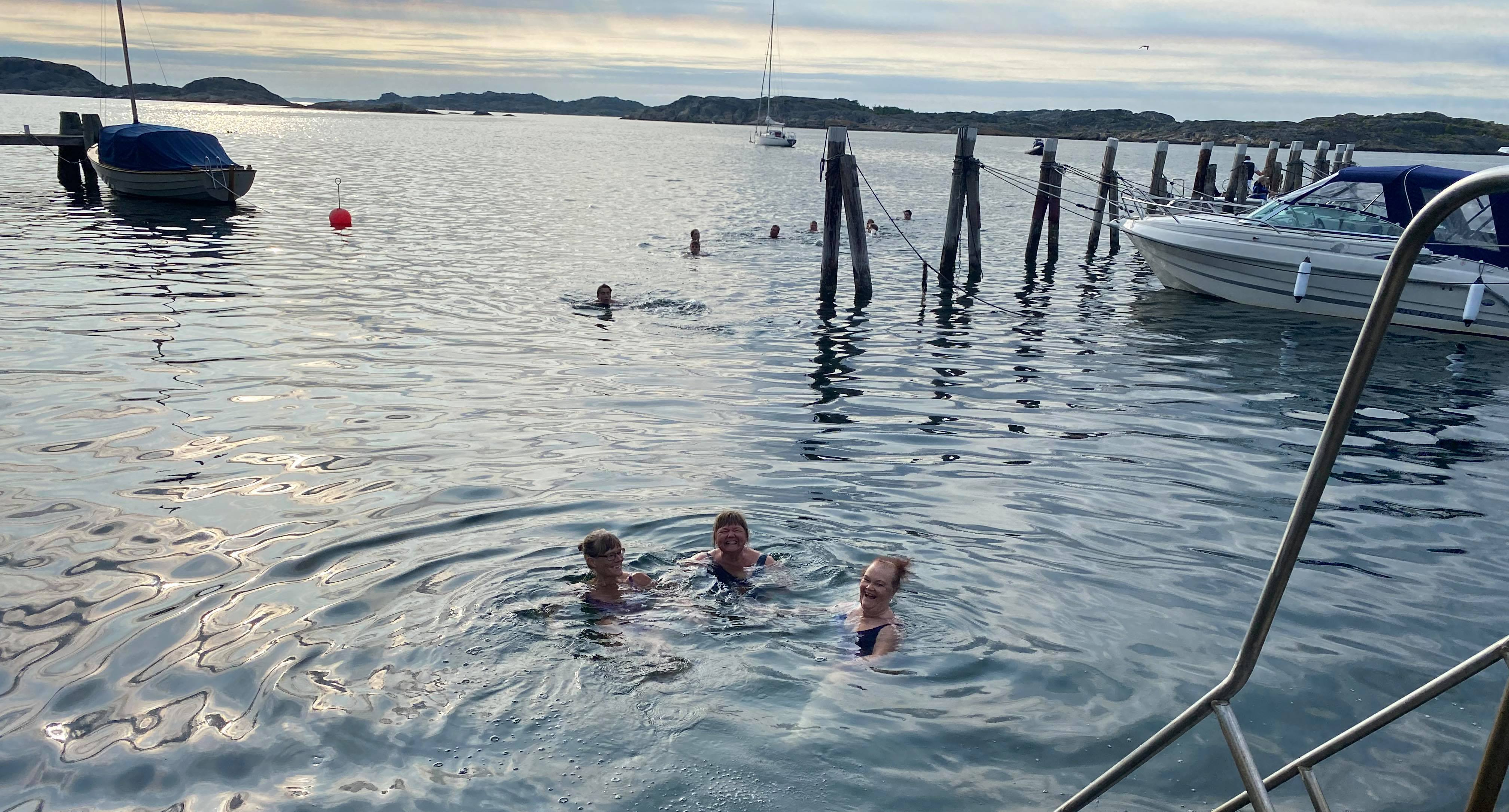 Jag gillar att komma ut på havet. Det är avkopplande och fridfullt. Vi lade till vid Rörholmen där vi badade från båten. Det var kallt i vattnet, 16-17 grader. Det var inte njutbart att ligga i men skönt med ett snabbt svalkande dopp. Det känns så friskt efteråt.