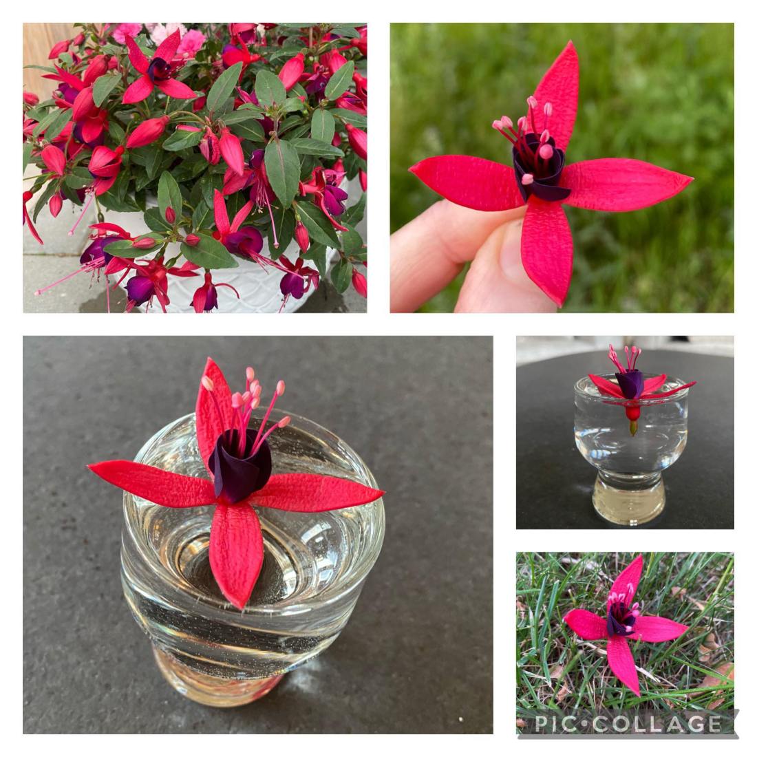 Ikväll när jag var ute och vattnade trillade en fräsch fuchsiablomma bort. Jag blev så fascinerad av den att jag började fotografera den i olika konstellationer. Vilken färgprakt! Jag älskar starka färger. Nu flyter den så fint här inne i en vas. Vår skapare har/hade en fantastisk förmåga vill jag säga och detta är bara en av alla otroligt vackra skapelser.