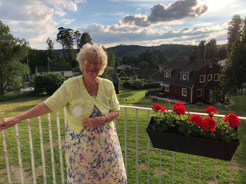 Mamma åkte buss och tåg och tog sig fram. Hon sa att hon mötte änglar som hjälpte henne överallt. Den sista tågresan hon gjorde på egen hand var mellan Nybro och Värnamo t.o.r. när vi skulle åka till Västerås och fira broder Hans 50-årsdag i juni 2019. Hon var strålande glad när jag mötte henne på stationen i Värnamo och hennes favoritklänning var på även då.