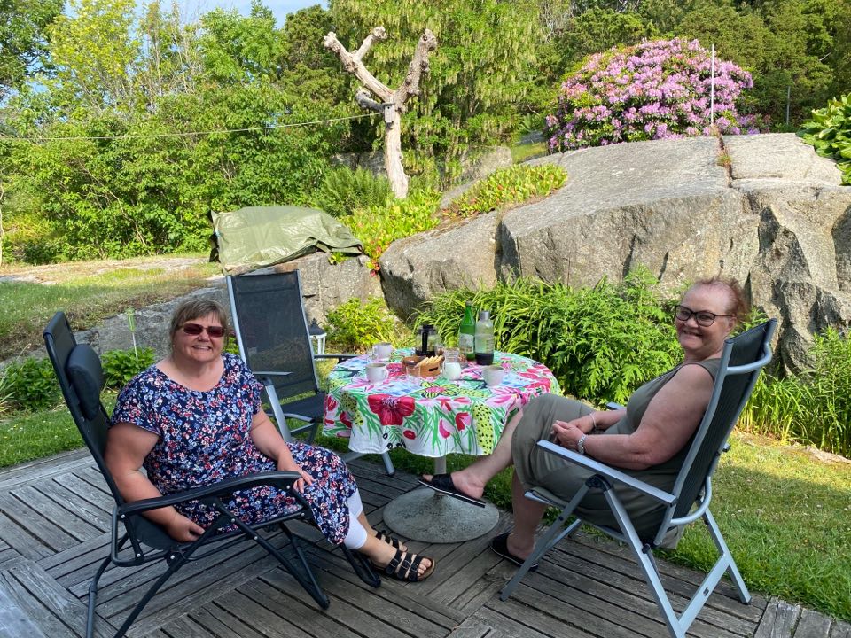 Mia bjöd på fika när vi kom fram. Det kändes helt underbart att få sitta och dricka kaffe tillsammans i deras härliga trädgård och bara prata och koppla av. Jag njöt varje sekund.
