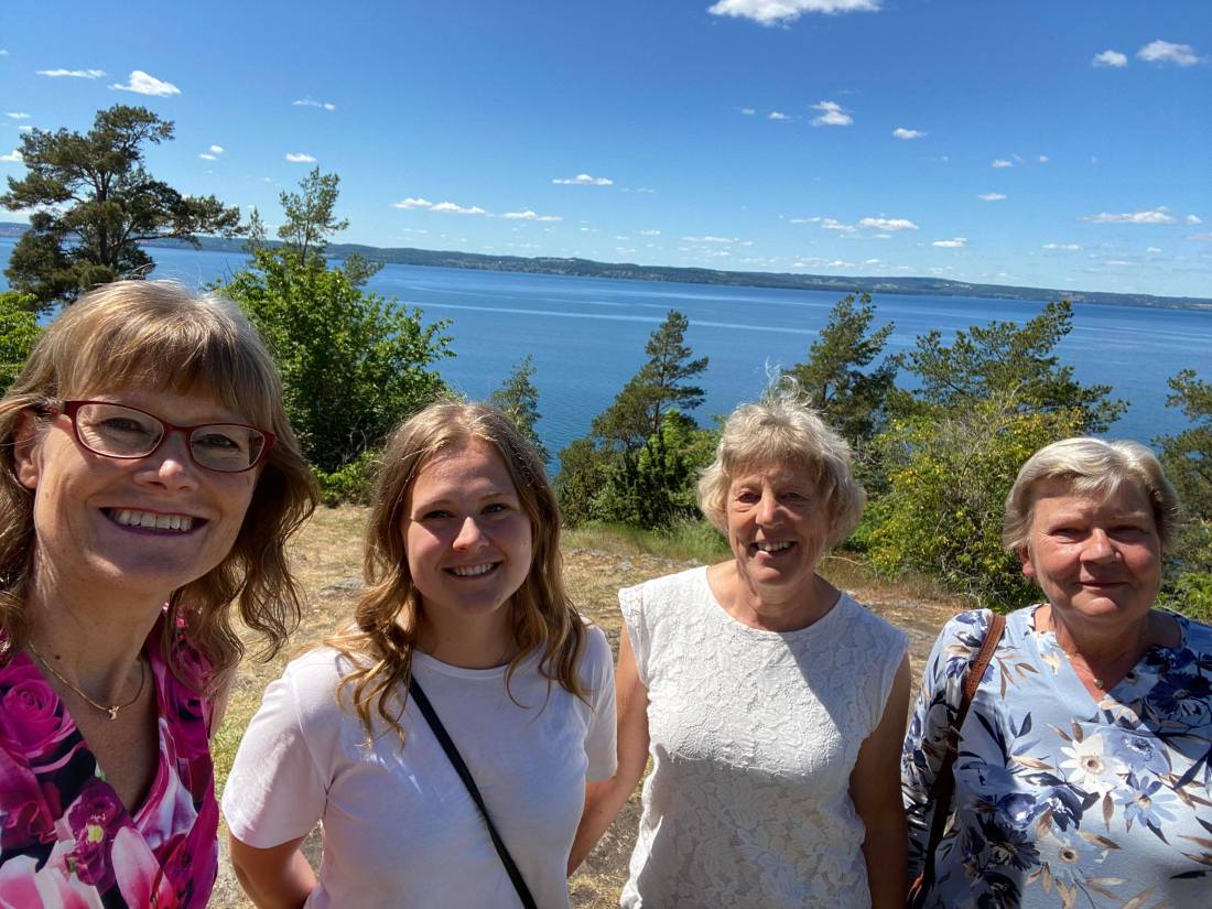 Idag på förmiddagen kom min kusin Boel och min syssling Britt-Marie från Nybro hit. Även mitt kusinbarn Carin som numera bor här i stan kom för att umgås med kära släkten. När förmiddagskaffet intagits hemma på Tallkullen styrde vi kosan mot Vista Kulle. Det är en av mina favoritplatser och jag älskar att ta med mina gäster dit. Carin och Britt-Marie har varit där tidigare men inte Boel.