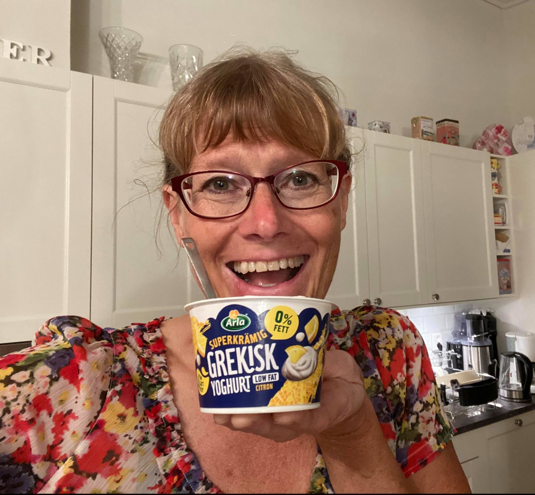 Jag är testpilot för Arlas ”Superkrämig grekisk yoghurt citron low fat”, 0% fett. Det var en positiv upplevelse och den var godare än vad jag hade tänkt. Frisk och lite syrlig smak, en perfekt efterrätt eller som mellanmål. 👍 Följer du Viktväktarnas lila linje så innehåller den 1 point per dl. Jag hade egentligen ätit hela min dagsranson och lite till men när den är så pointsfattig gör det inte så mycket. Jättegott helt enkelt! 👍 Den kommer jag att köpa igen.