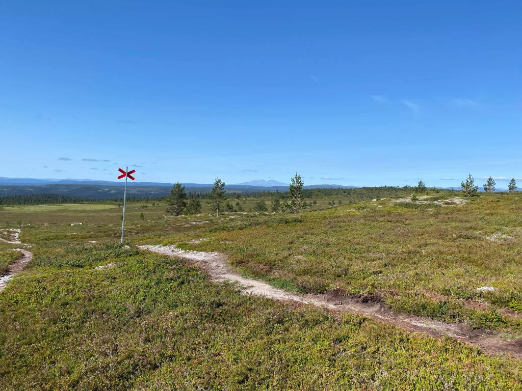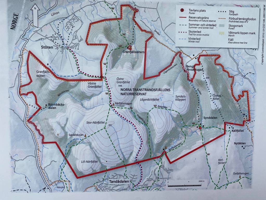 När vi hade gått ungefär halva sträckan uppe på fjället kom vi in i Norra Transtrandsfjällens naturreservat. Det skulle ha varit roligt att gå över Stor-Närfjället ner till Tandådalen men då hade det blivit komplicerat att hämta bilen. En annan gång kanske.