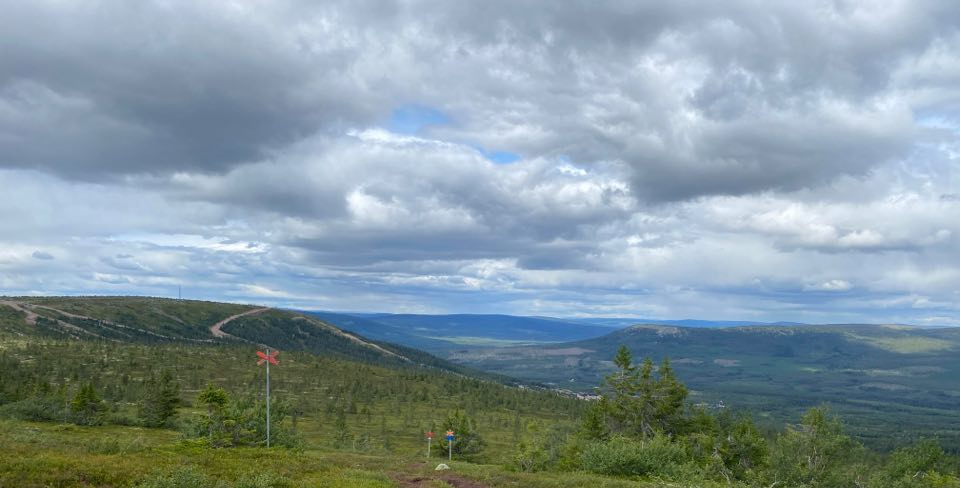Vi mötte många vackra vyer. Här blickar jag ner österut mot Sälen.