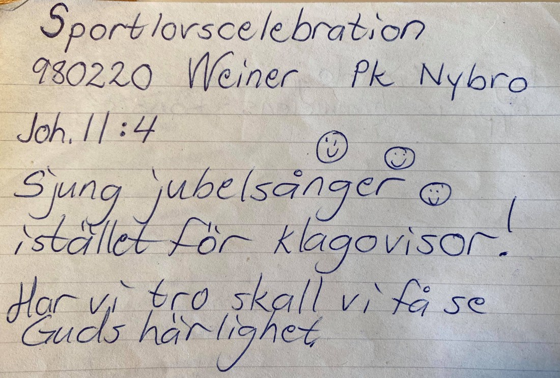 När jag gick igenom några gamla skrivhäften hittade jag bl.a. dessa anteckningar. Det är min gode vän Weiner Bergström som höll bibelstudium i Nybro Pingstkyrka sportlovet 1998. Jag har inte skrivit så mycket från detta bibelstudium men jag fastnade nu för orden Sjung jubelsånger istället för klagovisor.