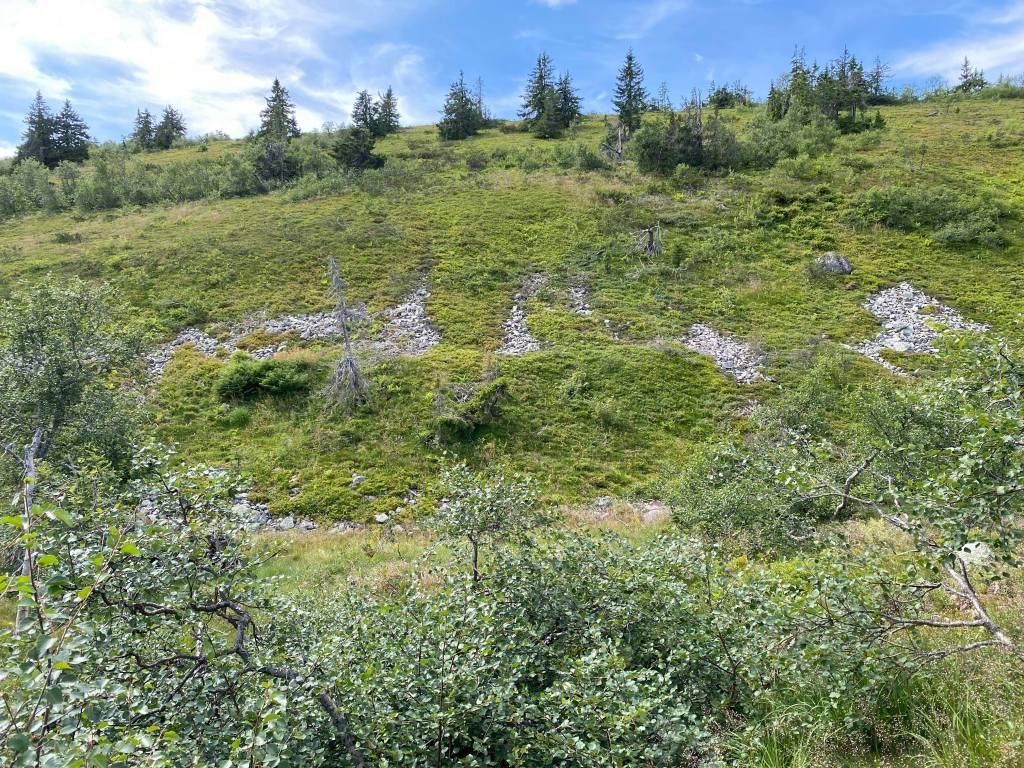 Här har vi passerat Hemfjällsstugan och fortsätter mot Storfjällsgraven. Bitvis var det jobbig terräng och jag nästan trodde att vi gått fel.