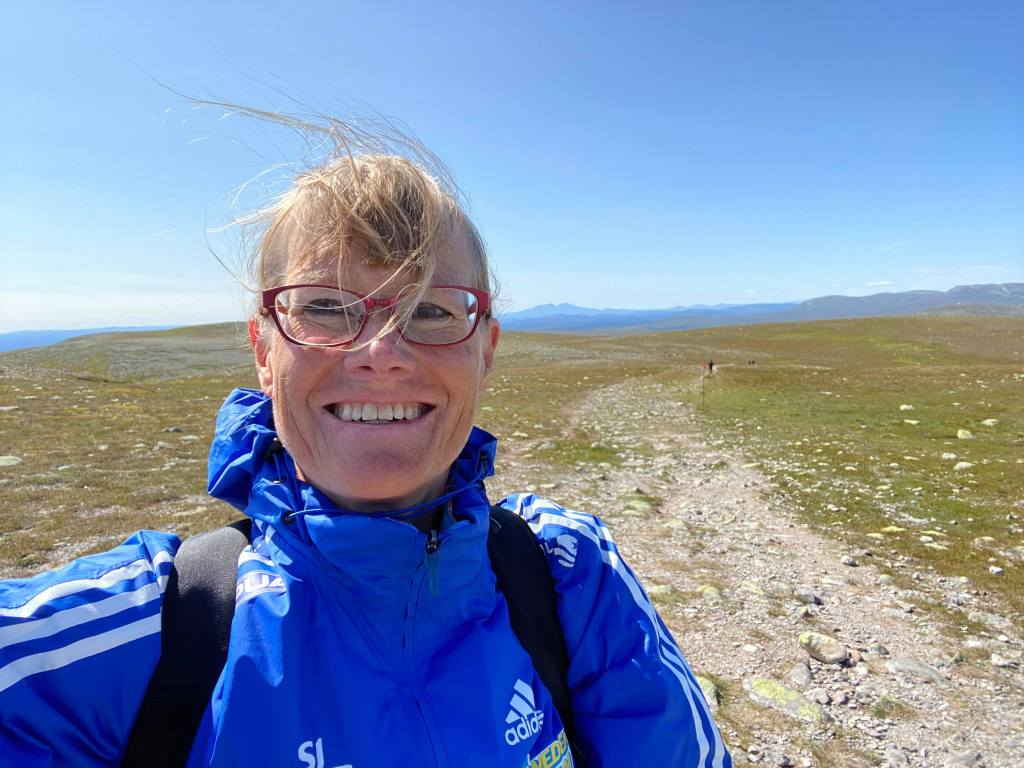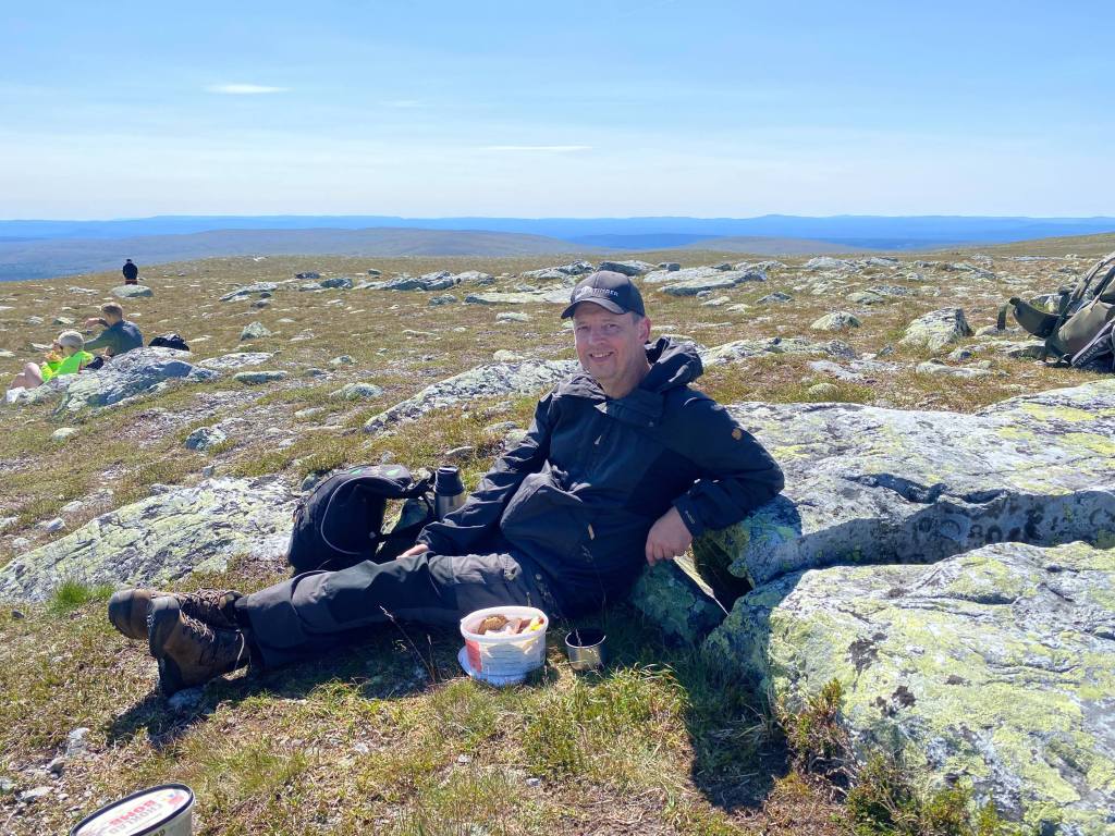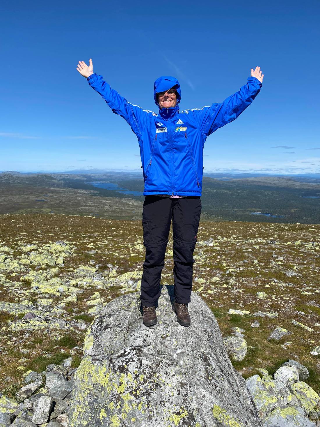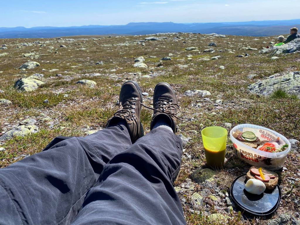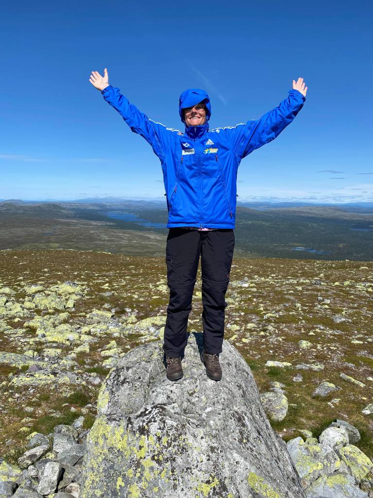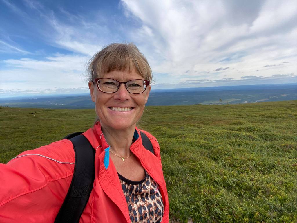 Nu har vi nått toppen av Storvätteshågna. Härliga känsla. Här har vi utsikt mot Härjedalen.