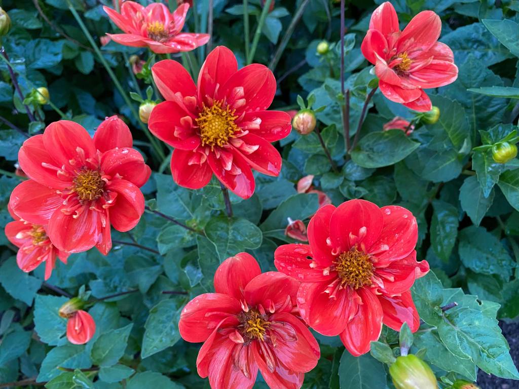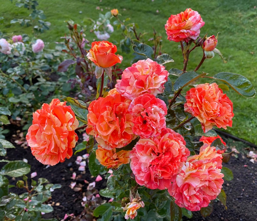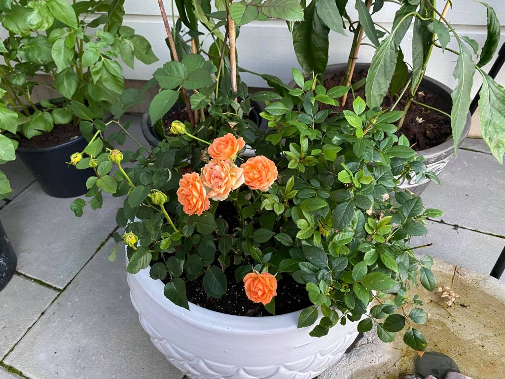 Jag älskar dessa orangemelerade rosor. Dahliorna börjar också blomma nu och ikväll fastnade jag för denna röd-orangea.