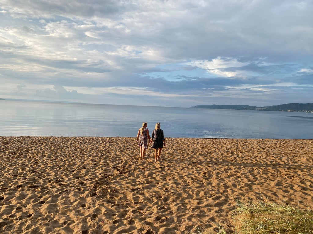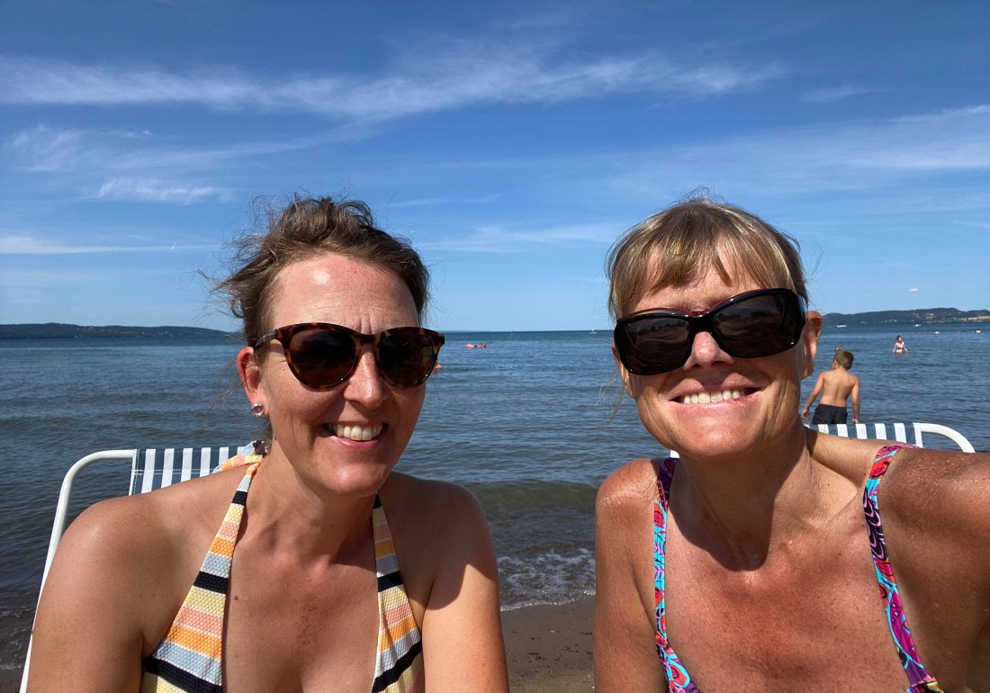 Vi började dagen med lunch här hemma och så blev det förstås en massa prat. Senare åkte vi till Vätterstranden. Det var en ljuvlig kväll och vattnet var behagligt så Pia och jag tog ett kvällsbad.