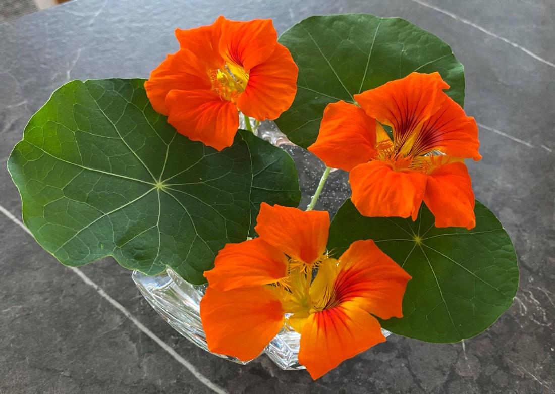 För första gången odlar jag krasse och det är så roligt. Det kommer fler och fler blommor och jag njuter. Jag tänker på Claude Monets trädgård i Giverny. Han hade en speciell krassegång och den har inspirerat mig. Nu väntar jag på att fler och fler blommor ska komma fram och täcka delar av uteplatsen. Underbart är det. Färgen orange gör mig glad.