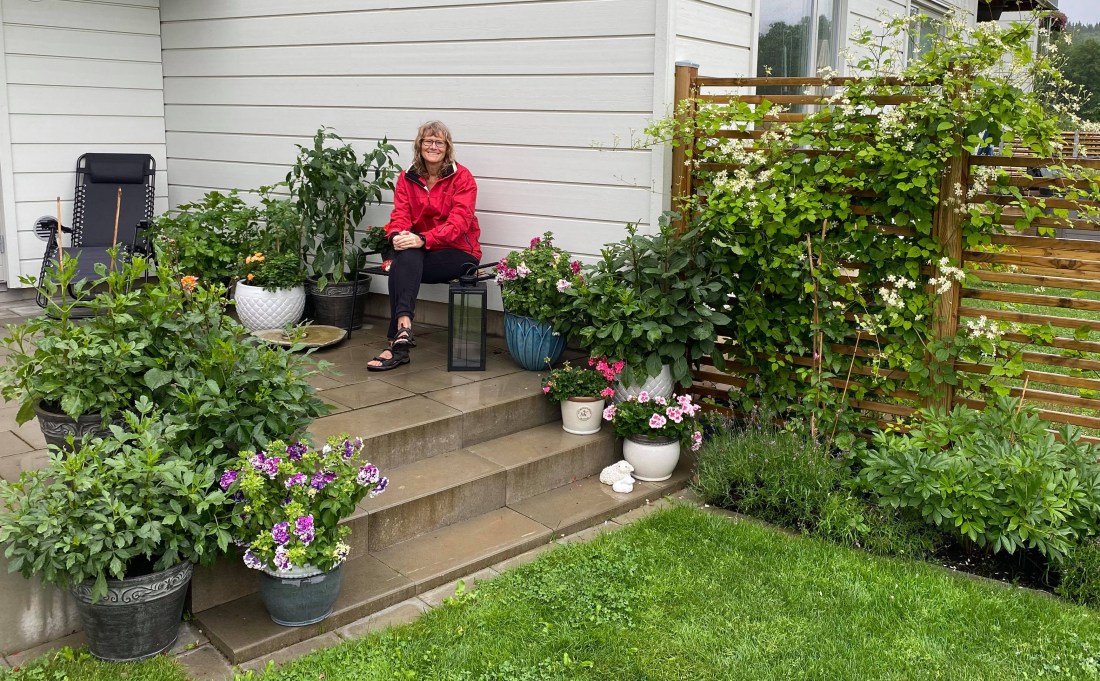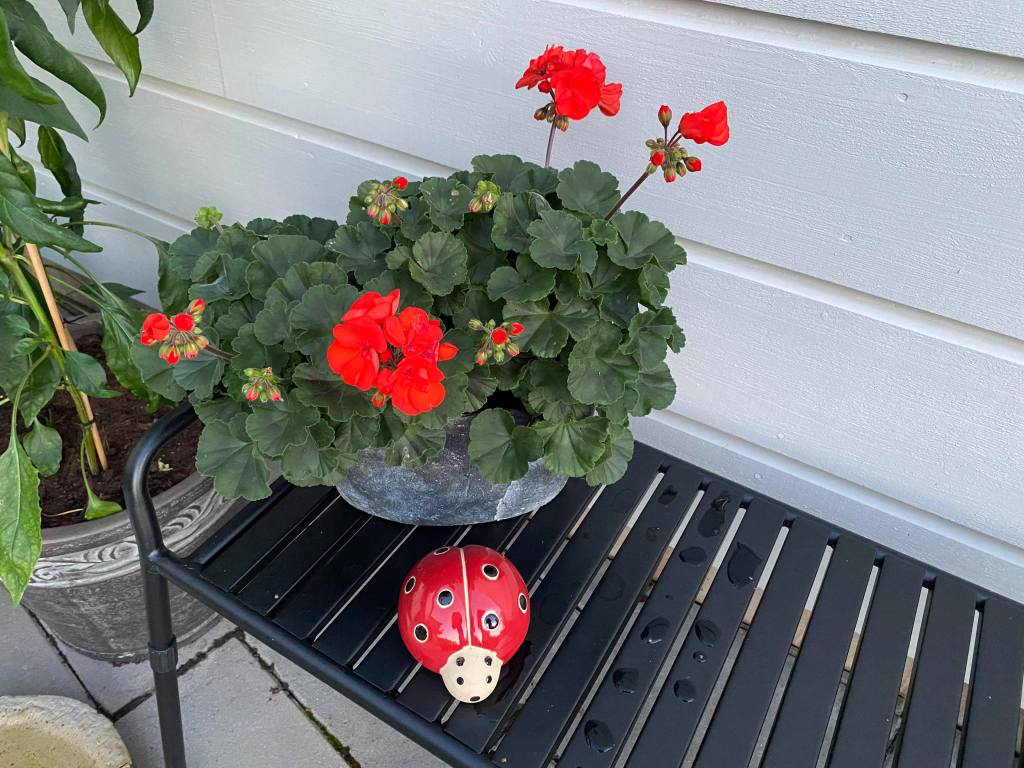 Den kom i mänsklig gestalt genom dessa änglar från Bergkvara (närmare bestämt Djursvik och Ragnabo). Sabine frågade om hon fick gruppera om mina växter på uteplatsen och självklart fick hon det. Jag har bara haft dem grupperade lite som jag tycker beroende på vilken sorts växt det är.