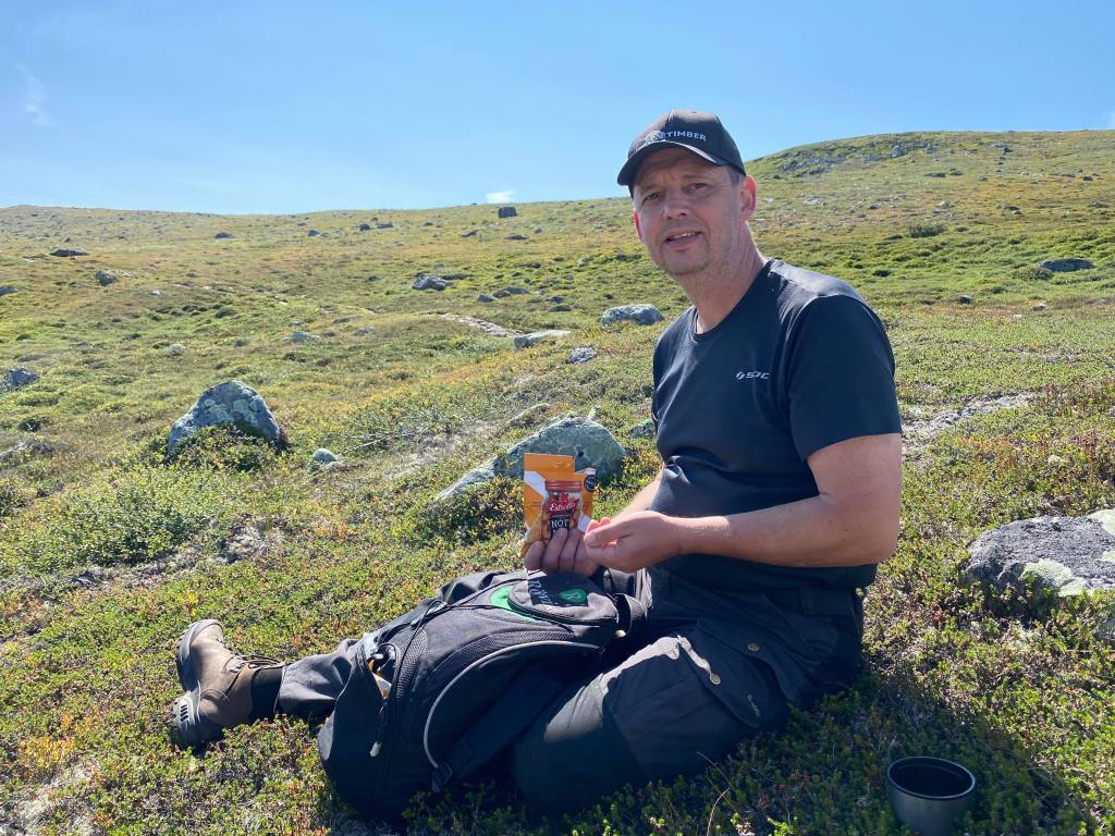 Väl uppe tog vi en välbehövlig vilopaus med kaffe och smörgås.