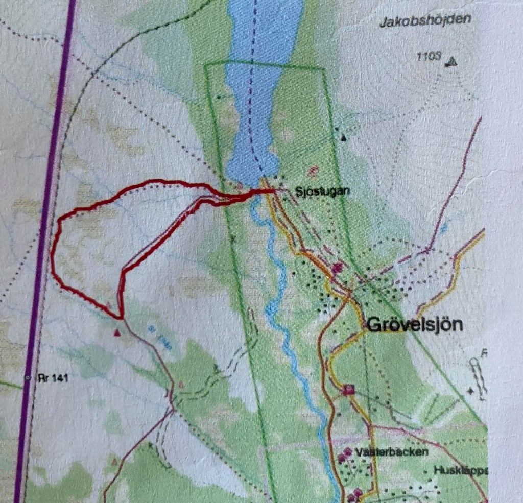 Vi körde till Grövelsjön där vi parkerade nära Fjällstationen och startade vår vandring genom skogen mot Sjöstugan där dagens vandringsled började. Vi upptäckte sen att vi hade kunnat köra ända ner till Sjöstugan men på detta sätt fick vi lite extra motion.