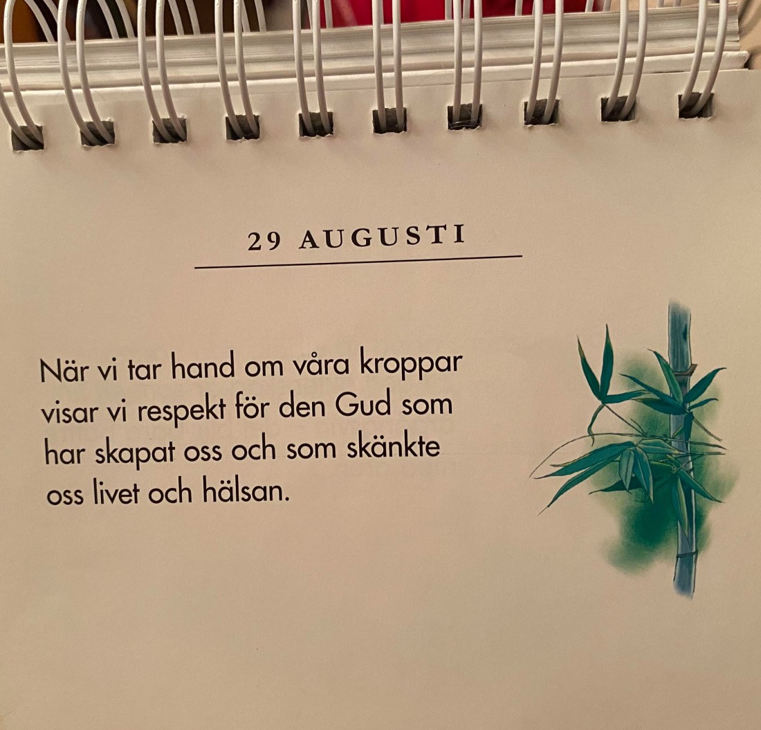 Jag blev inspirerad av detta. Frågan är då: Hur gör man på bästa sätt för att ta hand om sin kropp? Jag tror det kan variera lite från person till person eftersom vi är så olika. Jag tror att var och en får hitta ett sätt som passar just henne/honom.