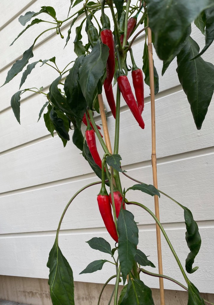 Nu har en massa chili mognat och jag ska börja skörda. Jag är så glad att det har lyckats. Jag fick plantor av en god vän i våras och nu ska jag ta frön från dessa frukter så att jag kan så mina egna plantor till våren. Det är verkligen roligt att odla. Jag får torka en del av alla chilifrukter för så här många har jag inte användning för på en gång. Det kan nog bli riktigt dekorativt att torka dem någonstans här inne. Återkommer med detta.