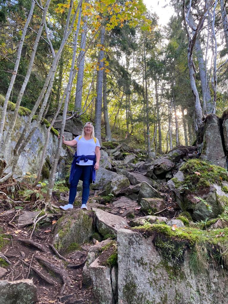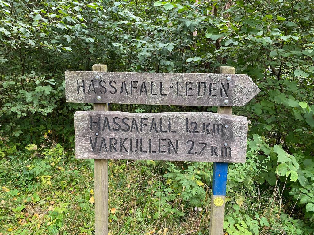 Min goda vän Yvonne och jag har gått Hassafall-leden med Varkullen ikväll. Det är alltid lika härligt att vandra längs med Tabergsån vid Hassafall. Vattnet forsar och trollskogen omger oss. När man går vidare uppåt blir det helt stilla. Man vandrar genom skogen, passerar Sandserydsvägen och går sen uppåt mot Varkullen. Där uppe har man en vidunderlig utsikt över nejden. Man ser Jönköping, Vättern och Visingsö. Man ser också tydligt våra hus runt Tallkullen.