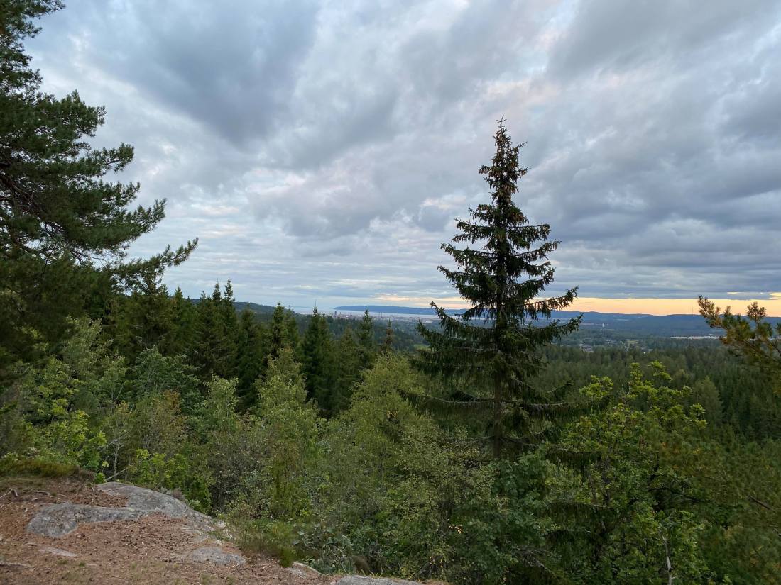 Så ljuvligt att sitta uppe på Varkullen och fika och njuta av stillheten. Vi satt där uppe länge och njöt av den härliga kvällen. Det började skymma och vi fick se hur lamporna börja tändas upp i staden. Vi lade även märke till den vackert belysta Munksjöbron. När vi kom ner till Hovslätt igen var det mörkt. Jag rekommenderar denna led dagtid om du inte känner till den sen tidigare. Leden startar vid Hovslätts hembygdsgård.