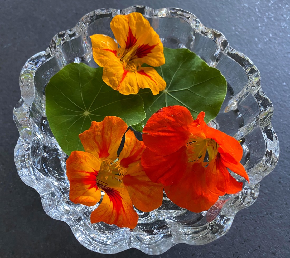 Man kan äta allt på växten, både blad, blommor och bärliknande frön. Ibland tar jag mig ett blad eller en blomma att mumsa på när jag vattnar. Ibland blandar jag det i en sallad eller också bara lägger blad, blommor och frön i en egen salladsskål till måltiden.