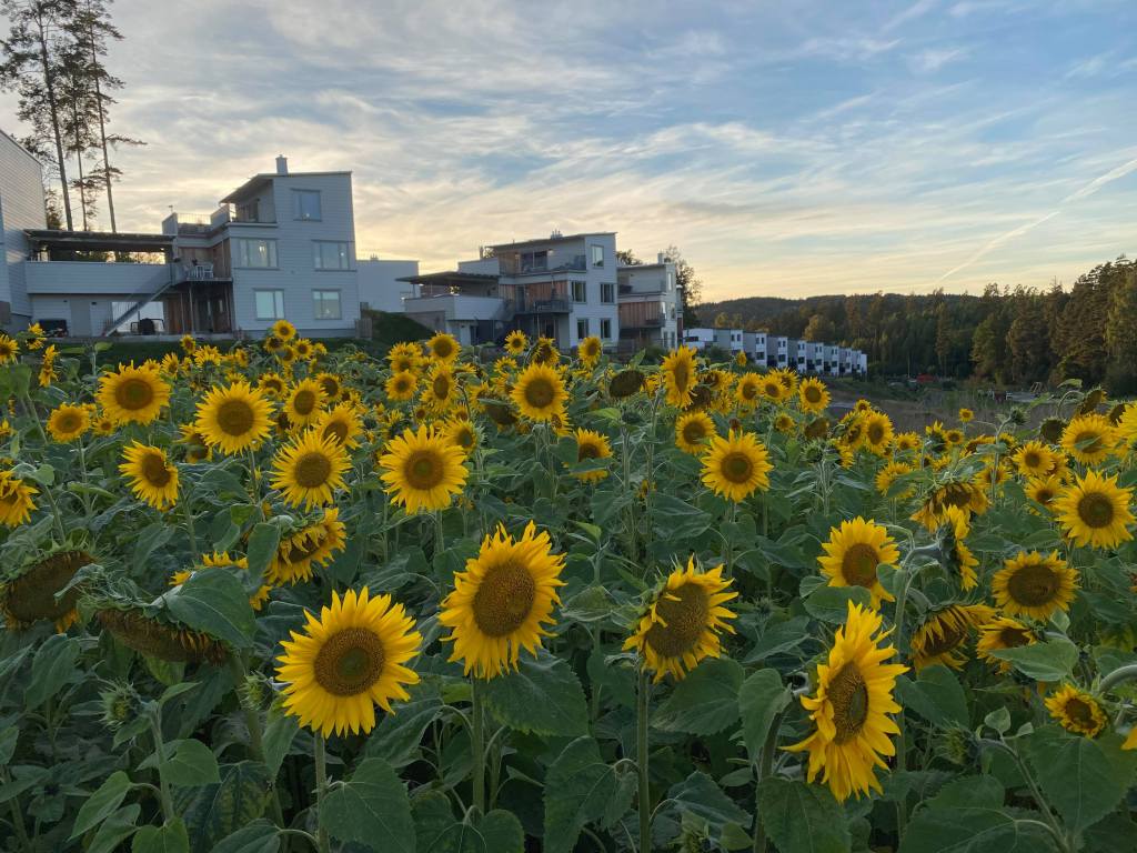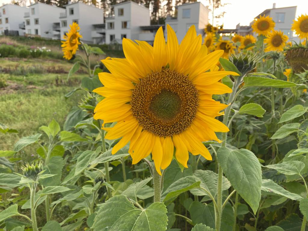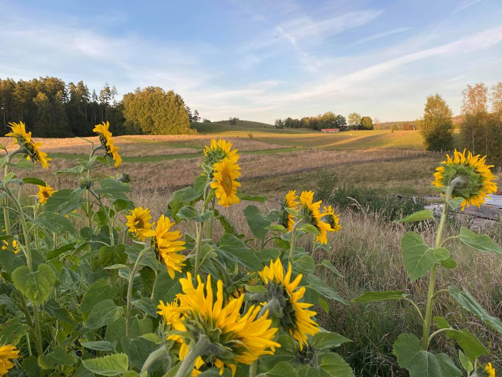 Min goda vän Helena kom hit på fika efter jobbet. Vi satt ute och njöt i den härliga eftermiddags-/kvällssolen. Sen tog vi en promenad på Hovslätts Ängar och där fick vi se ett litet solrosfält. Helt underbart! Det var nästan så jag trodde att jag var i Provence men det fanns precis bakom husknuten. Jag har inte promenerat här sen i midsomras så detta har jag missat totalt. Jag blev så glad av denna fina upplevelse ikväll. Det finns ständigt små överraskningar i vardagen.
