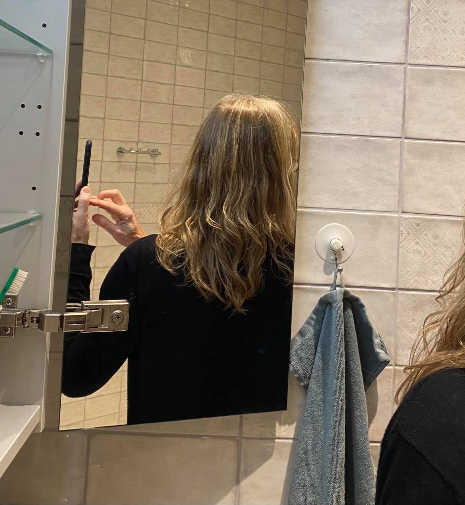 Jag har inte varit hos frissan på nästan ett år tror jag. Den frissa jag haft lade ner under coronapandemin och jag har inte kunnat välja vem jag ska gå till. Jag ville också ha lite längre hår så det passade bra att vänta. Luggen har jag klippt själv ett antal gånger. Jag gick till en frissa här i Hovslätt. Jag brukar göra folieslingor men denna gång blev det något nytt, en teknik som heter Balayage. Balayer är franska och betyder sopa. Balayage är en teknik där man målar slingorna där man vill ha dem.