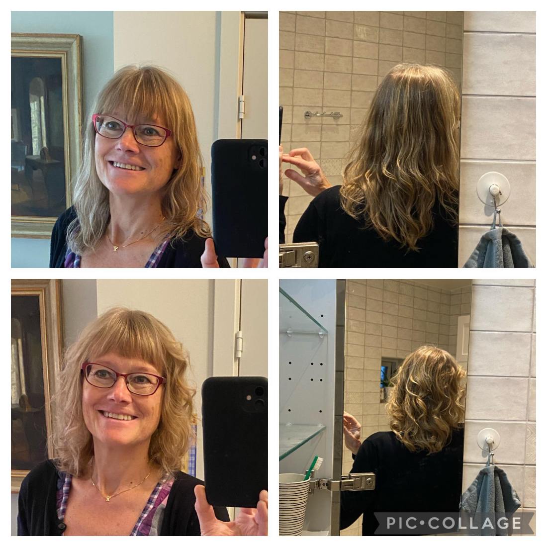 Jag vet inte om det blev så stor skillnad mer än att det är lite kortare och att hon lockat det. Det brukar visa sig efter ett tag. Lite uppfräschat är det i alla fall. Här kommer före- och efterbilder.
