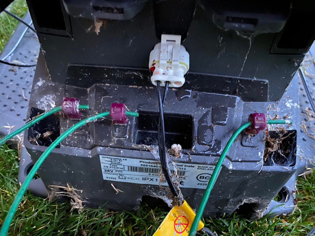 Jag vinterbonar för fullt och idag var det dags att ta in automowern med tillbehör. Ja, här gäller det att kolla hur sladdarna är kopplade innan jag tar bort dem så att jag kopplar rätt till våren. Jag tar ofta kort för att komma ihåg hur det ska vara. Nu tror jag att jag har koll på läget.