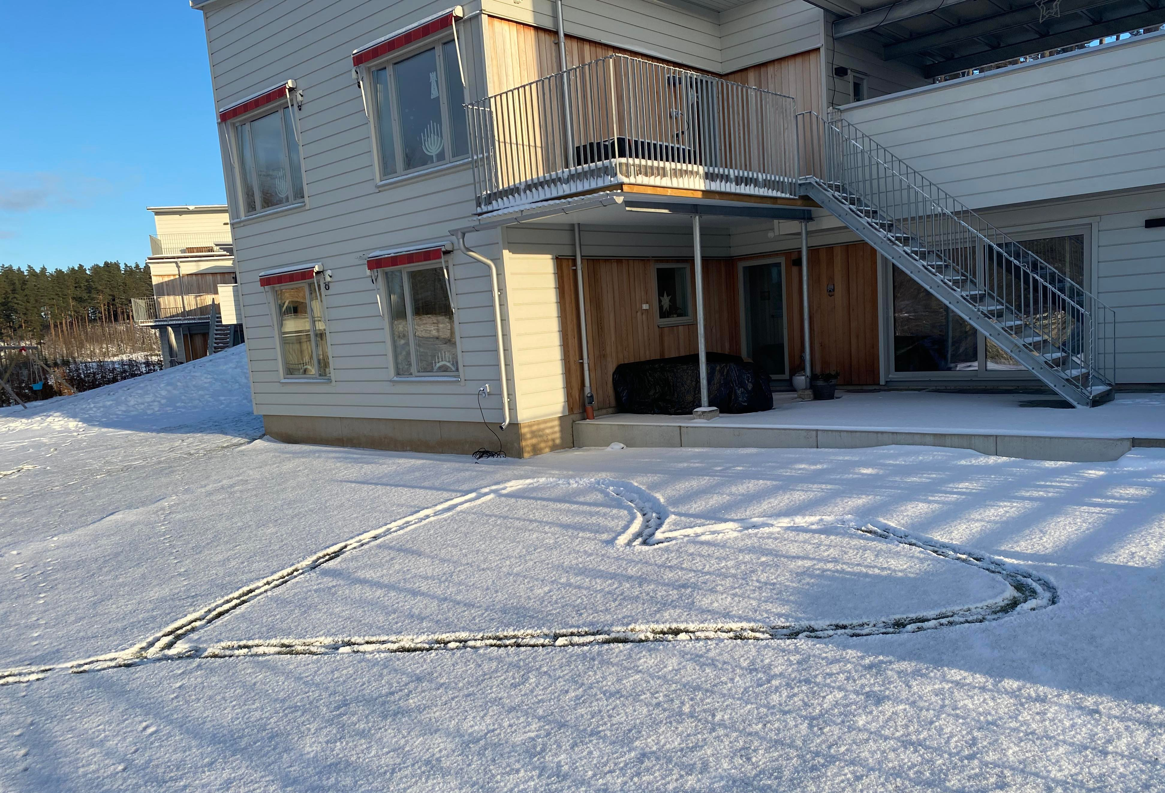 Jag tittade till mina vänner husdjuren i trädgården och de mår fint. Ett snöhjärta blev det också. Det är de små ljusglimtarna i vardagen som är en stor del av livet.