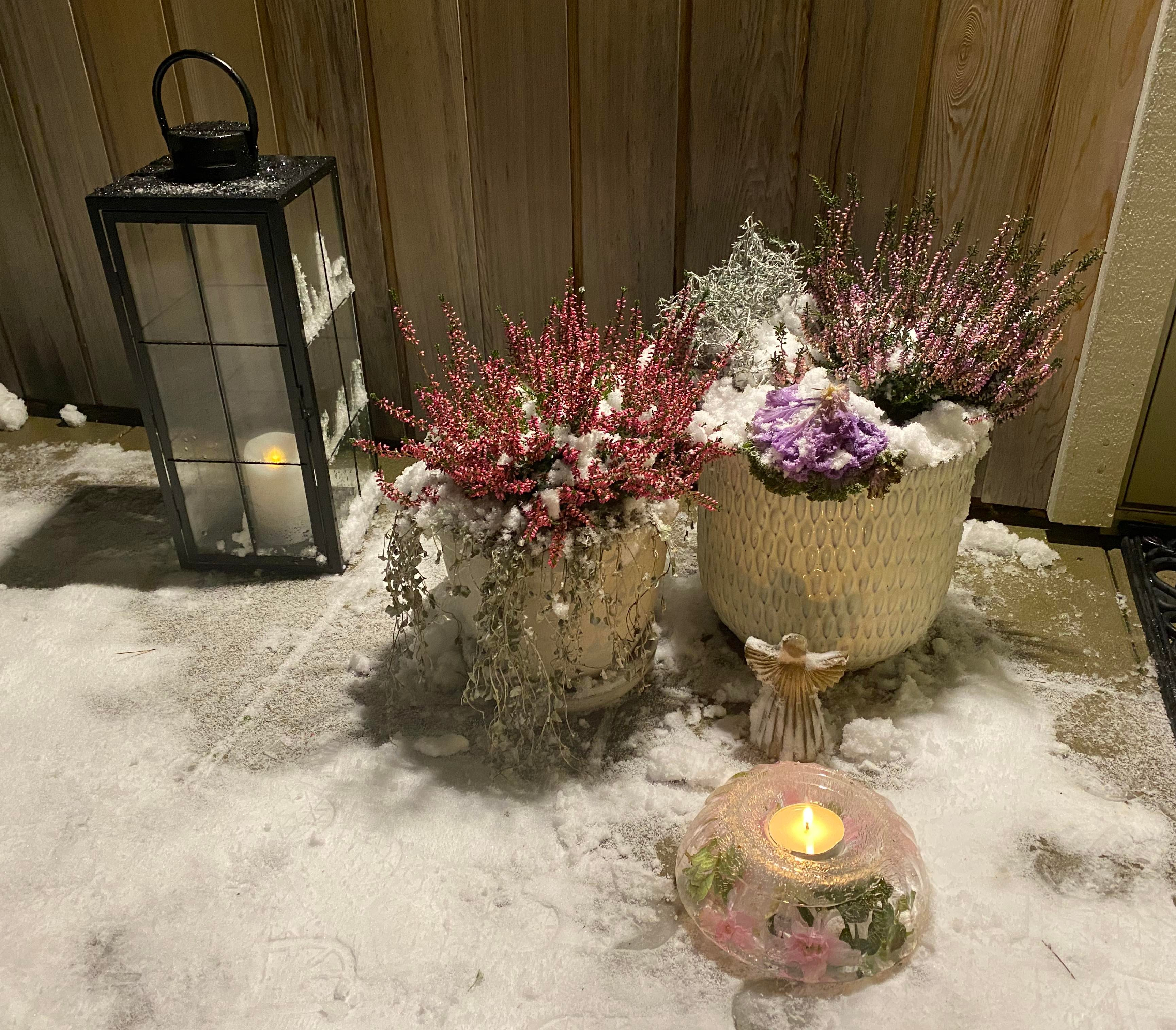 Efter någon timma när jag gick ut för att titta till den hade värmeljuset åkte ner en bit och det var jättefint det också. Jag säger som Ernst: – I det enkla bor det vackra.