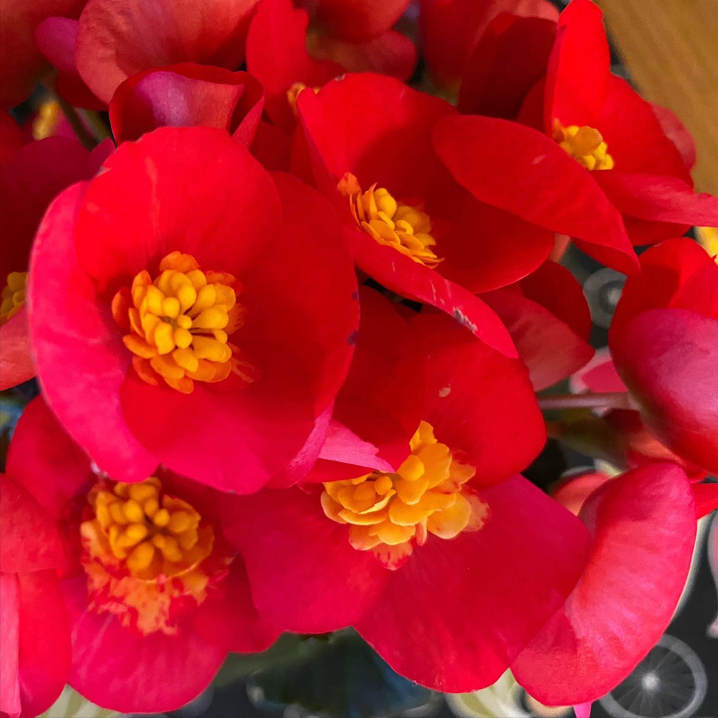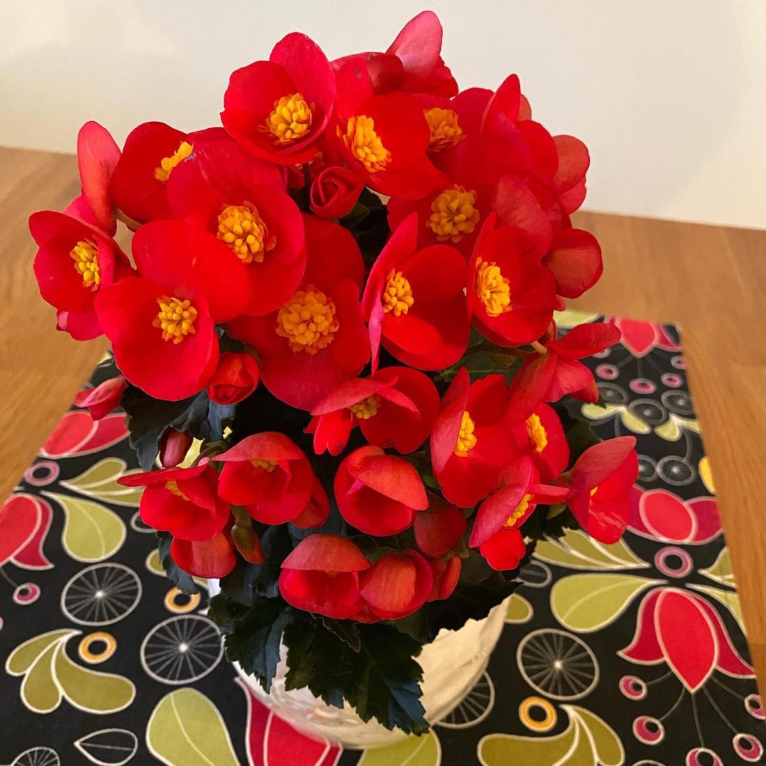Jag fick se denna ljuvliga begonia i affären när jag skulle handla mat idag. Jag tycker den är helt underbar och kunde inte motstå den. Jag insåg att den skulle passa bra hemma hos mig. Jag vet inte om jag sett en begonia med just den färgkombinationen tidigare. Nu står den här på bordet och skänker glädje.