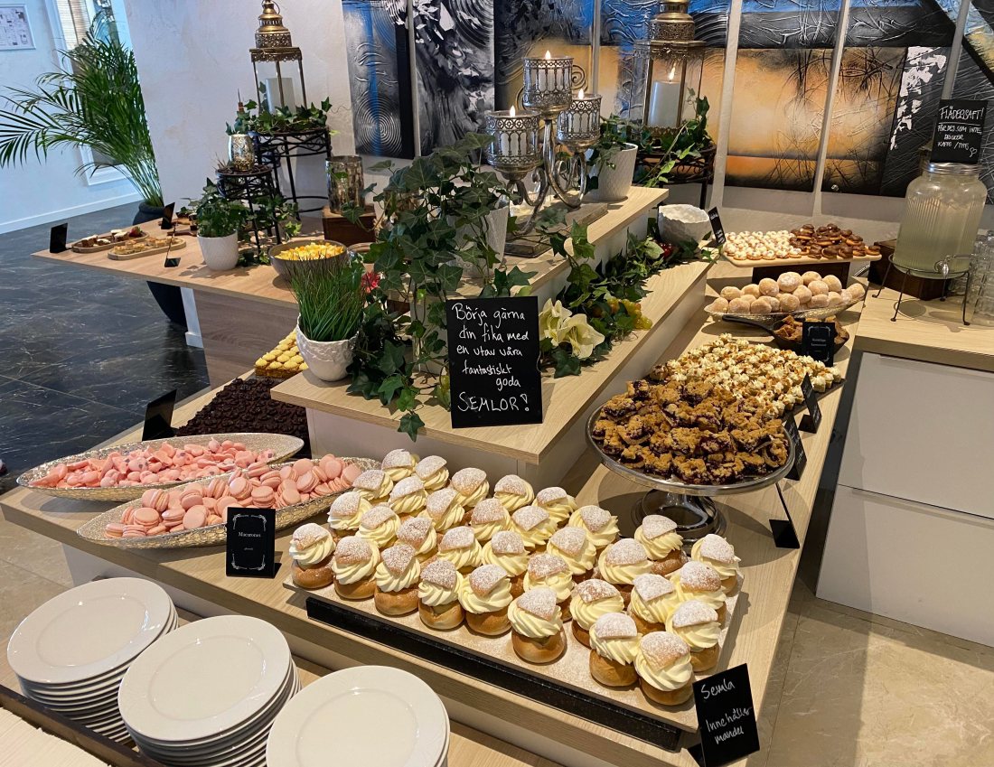 Min goda vän Yvonne och jag är på spa i Himmelsby och det är faktiskt himmelskt. Jag har varit här flera gånger tidigare men idag blev jag överraskad. Jag visste sen tidigare att de håller på att bygga ut och renovera och nu är mycket klart. Det är så fint här. Det har varit bra tidigare också men nu är det en helt annan klass. Vi började med kakbuffé kl 14.30 och det var ett dignande bord med semlor och en massa andra läckerheter.