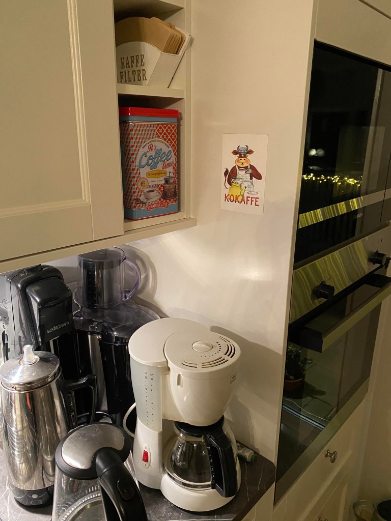 När jag växte upp var det kok-kaffe som gällde och min pappa älskade kaffe. Jag har kvar kaffekokaren som vi använde hemma men jag använder den inte. Jag kom på att det kanske är dags att börja använda den igen. Fördelen med kok-kaffe är att det blir riktigt varmt och det är bra när man sen häller mjölk i. Jag gillar inte när kaffet svalnar för snabbt.