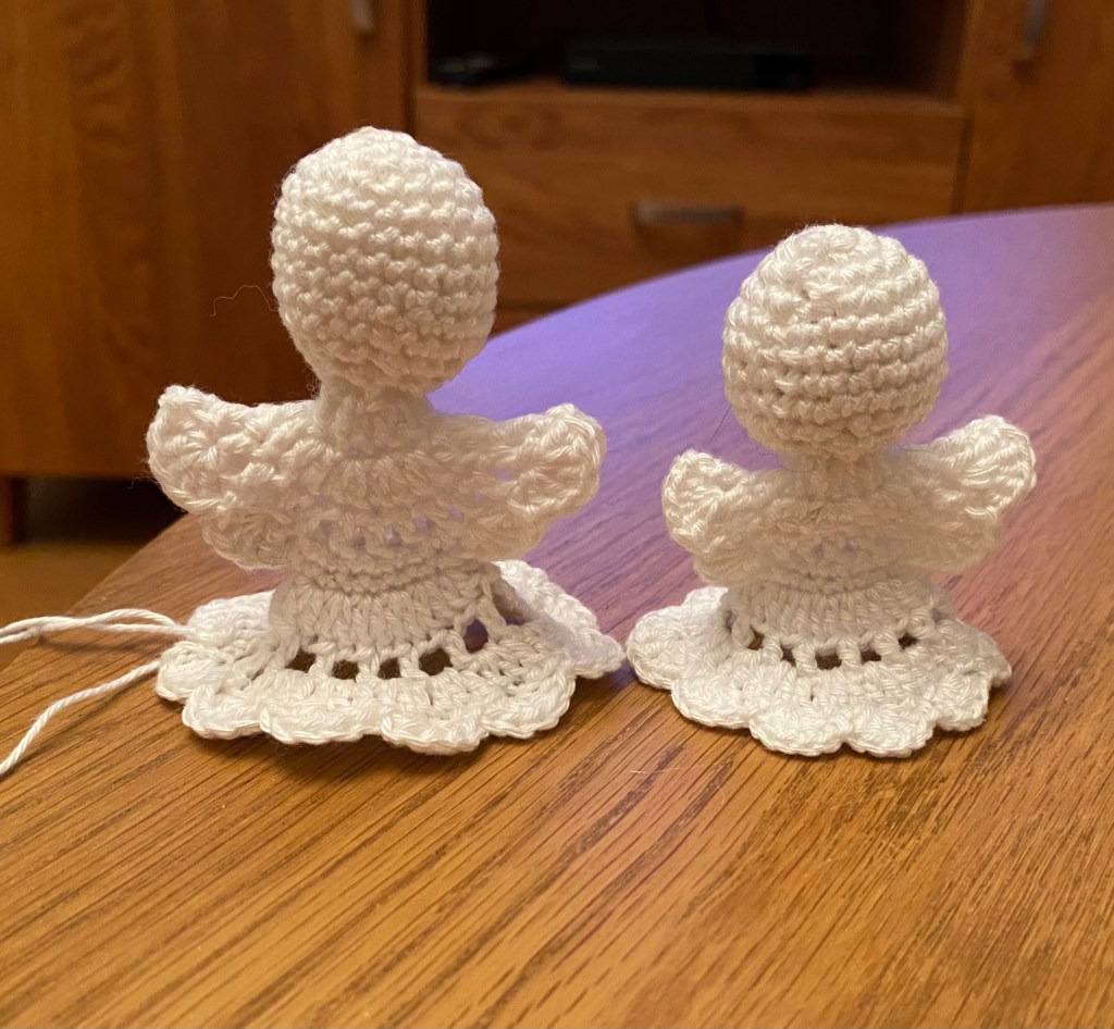 Förra julen fick jag en ängel av min goda vän Gunilla. Ikväll har jag äntligen virkat klart min första ängel. Just nu tittar de båda änglavännerna på Rapport. Jag tror att de liksom jag är ledsna över det som sker i Ukraina. Gud, grip in på något sätt och stoppa detta förfärliga som händer! Jesus, hjälp och beskydda människor och djur!