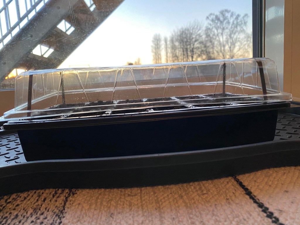 Nu är det två veckor sen jag sådde fröna från jätteverbenan. Den har stått ute hela tiden och fått den köldknäpp den behöver men idag fick den flytta in. Jag vattnade och satte locket över med några små pinnar under så att det kommer in lite luft. Det går också bra att sluta locket helt men lyfta det varje dag för att släppa in ny luft men jag testar att göra så här så det cirkulerar lite luft hela tiden. Det är så roligt med nya projekt.