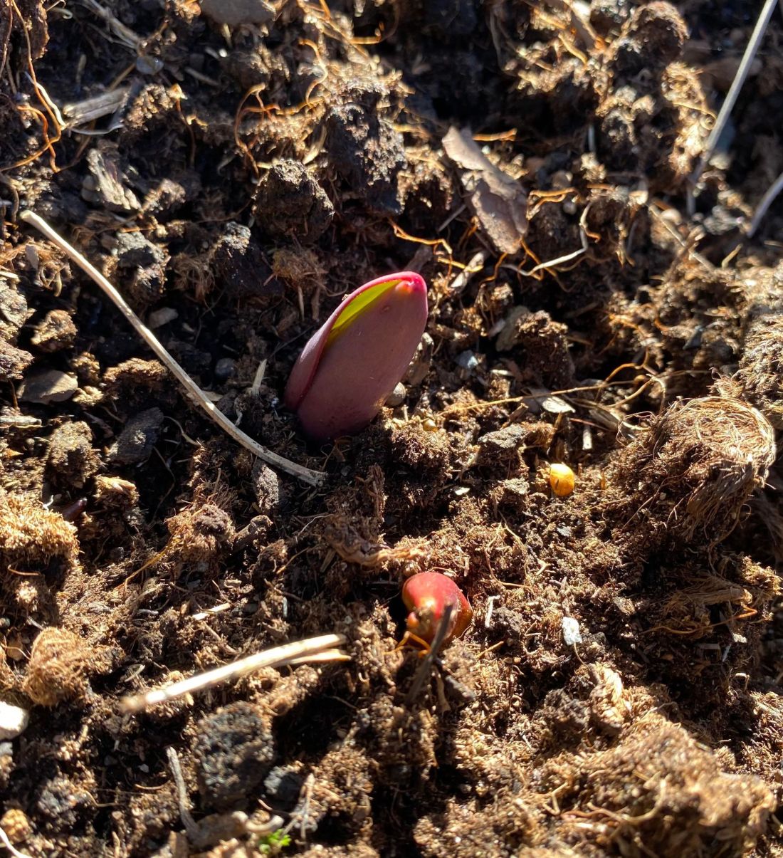 På senhösten köpte jag många tulpanlökar som jag petade ner lite här och där i blomlanden. Idag är det ett riktigt vårväder och när jag hem efter en långpromenad gick jag runt i trädgården för att se om mina blommor börja komma upp. Oj, vad roligt! Tulpanerna är på väg. Hurra! Detta ska bli roligt att följa. Tänk när alla dessa lökar slår ut i full blom….om de nu gör det. Man kan inte vara säker. Jag önskar Er alla som läser min blogg fina vårdagar. Så skönt att vårsolen är här på riktigt.