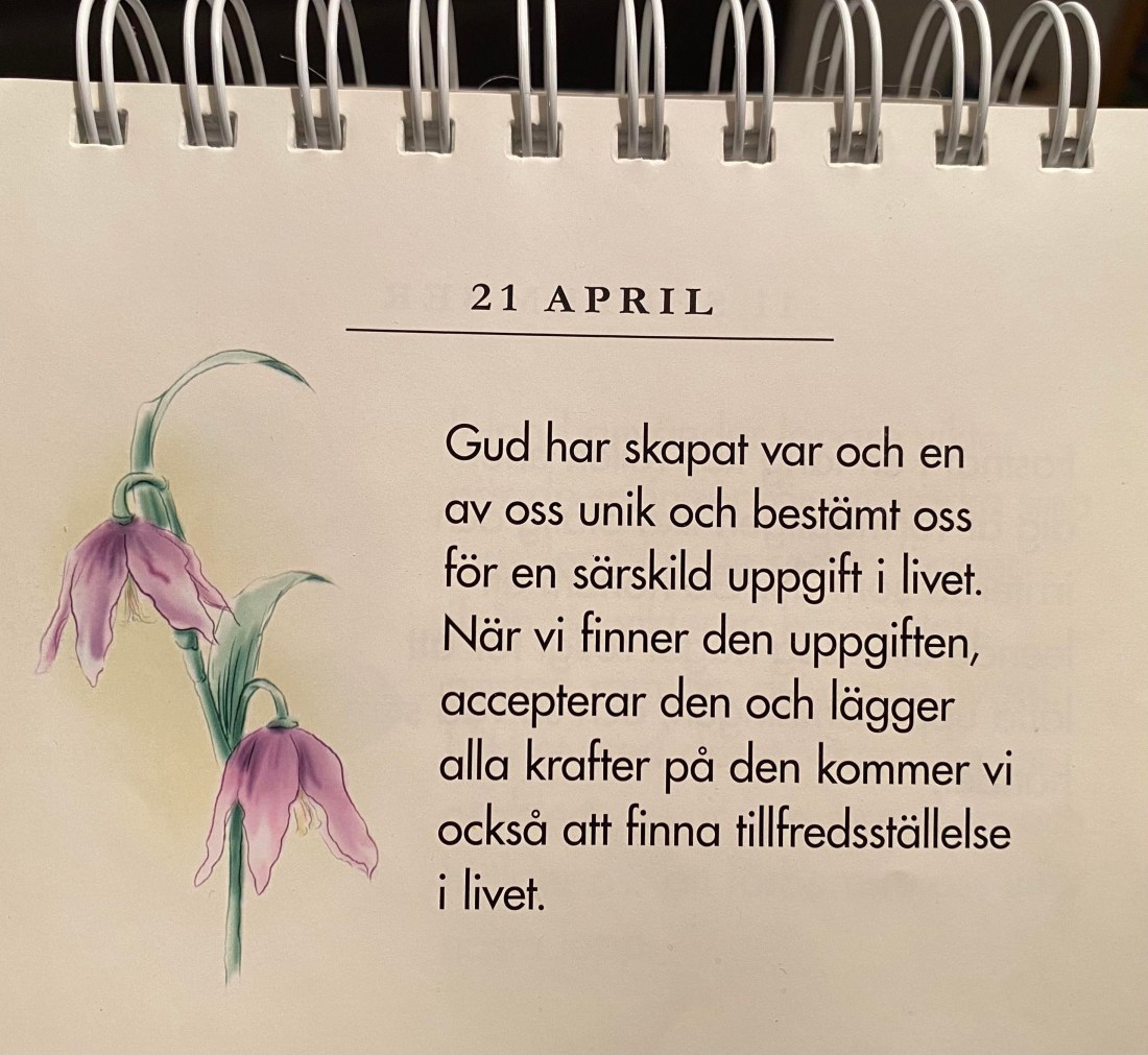 Dagens budskap i min kalender Tankar om Livet är tänkvärt. Det lyder som följer:
