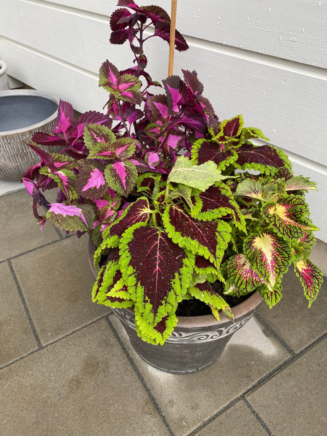 Tidigt i våras fick jag telningar av palettblad av en god vän. När de fått rötter planterade jag dem och nu de har vuxit sig riktigt stora inomhus. Jag saknade röda palettblad och ville gärna ha det också. För ett par veckor sen var det en körkompis som berättade att hon fått palettblad som hon inte kände för att behålla och jag sa direkt att jag ville ha dem. Hon tog med dem till kören nästa gång och det var mitt i prick. De var röda. Ikväll har jag planterat ut dem i en stor kruka och jag hoppas att jag ska kunna sköta dem så de håller sig fina hela sommaren. Jag tycker de är otroligt dekorativa. Bladen är som små konstverk.